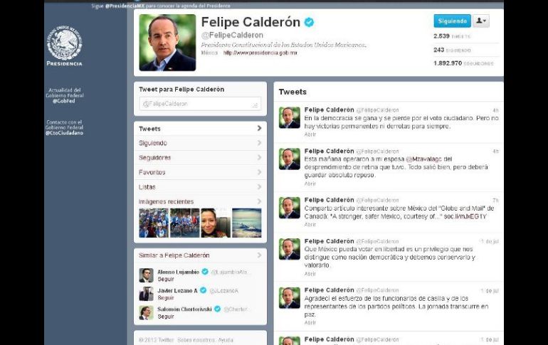 México | ''En elecciones libres quien verdaderamente gana es el pueblo'', afirma el Presidente No hay victorias permanentes, ni derrotas eternas: Calderón ''En elecciones libres quien verdaderamente gana es el pueblo'', afirma el Presidente Por: SUN 2 de julio de 2012 - 15:00 hs El Presidente Calderón afirma que las derrotas no son para siempre, a través de un mensaje en su cuenta de Twitter. / CIUDAD DE MÉXICO (02/JUL/2012).- El Presidente Felipe Calderón afirmó que las derrotas no son para siempre. ''En la democracia se gana y se pierde por el voto ciudadano. Pero no hay victorias permanentes ni derrotas para siempre'', redactó en su cuenta de Twitter. De esta manera, el Mandatario retomó una frase de su discurso pronunciado la noche de ayer domingo en cadena nacional tras los datos difundidos por el IFE con el virtual triunfo del candidato del PRI, Enrique Peña Nieto. ''En democracia no hay victorias permanentes y no hay derrotas para siempre (...) en elecciones libres quien verdaderamente gana es el pueblo'', afirmó anoche Calderón. Hace 12 años, Ernesto Zedillo dijo que el próximo Presidente de la República sería Vicente Fox Quesada. Lo hizo desde Los Pinos, a las 23:10 horas del 2 de julio de 2000, en un mensaje a la nación, luego de que felicitó al candidato de la Alianza para el Cambio, a quien invitó a reunirse en breve para preparar una entrega transparente, pulcra y eficaz de la administración. ''Justo ahora el propio IFE nos ha comunicado a todos los mexicanos que cuenta ya con información, ciertamente preliminar, pero suficiente y confiable, para saber que el próximo presidente de la República será el licenciado Vicente Fox Quesada'', aseveró Zedillo hace 12 años. En enero de 2011 en Davos, Suiza, Ernesto Zedillo -quien como presidente declaró la transición al PAN y aceptó el triunfo de Vicente Fox en el 2000- levantó su dedo pulgar de la mano derecha y dijo: ''¡Vamos a ganaarrr!'' Temas Felipe Calderón Elecciones México 2012 Lee También Balean a abogado frente a Ciudad Judicial en CDMX Este será el costo del Gas Bienestar en la semana del 13 al 18 de octubre Viral: vendedor de carnitas es detenido por matar a extranjero a tubazos en la CDMX ¿Cuánto cuestan y dónde comprar boletos para el México vs Ecuador? Recibe las últimas noticias en tu e-mail Todo lo que necesitas saber para comenzar tu día Registrarse implica aceptar los Términos y Condiciones
