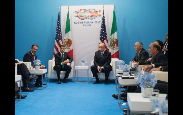 HAMBURGO, ALEMANIA (07/JUL/2017).- Durante el encuentro que sostuvieron los presidentes de México, Enrique Peña Nieto y de Estados Unidos, Donald Trump, no se trató el tema del muro fronterizo entre las dos naciones, aseveró el secretario de Relaciones Exteriores, Luis Videgaray."El tema del muro no se trató. No es un tema de la relación bilateral. Habíamos acordado previamente con los equipos, que el muro no se tocaría y efectivamente no se habló del tema del muro", en la conversación que tuvieron los mandatarios en el marco de la Cumbre del G-20 que se desarrolla en esta ciudad."Yo lo que les puedo decir son dos cosas: primero, no fue parte de la conversación. No fue parte de lo que hablamos; y segundo, este comentario que dicen que hizo en voz baja el presidente Trump, yo no lo escuché".Así lo aseveró el titular de la Secretaría de Relaciones Exteriores (SRE) sobre las versiones que señalan que el mandatario estadunidense respondió afirmativamente a la pregunta de un medio de comunicación, acerca de si mantenía su posición de que México pagaría el muro fronterizo. En entrevista al término del encuentro, el canciller mexicano puntualizó que este tema no fue parte de la conversación bilateral, y que "la posición de México es absolutamente invariable.“Ese no es un tema de la relación bilateral, ni es parte de la conversación entre los dos países y no fue parte de la conversación entre los presidentes el día de hoy", insistió Videgaray Caso.