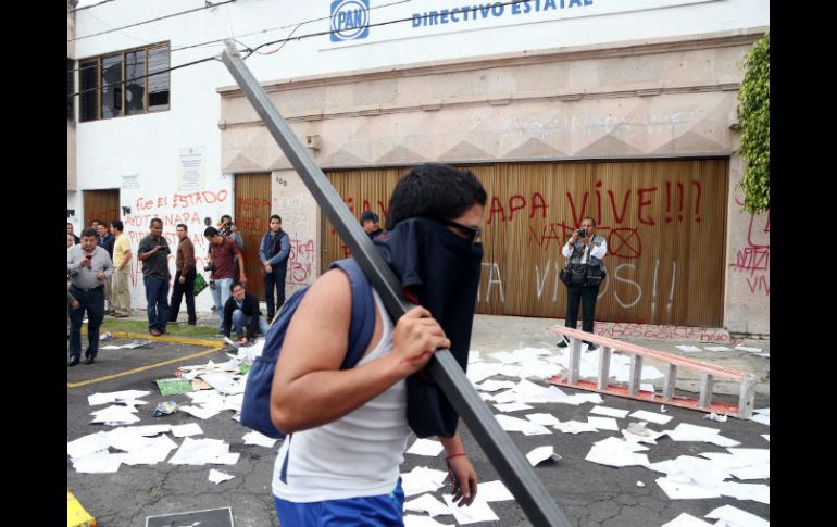 México | Realizan destrozos en edificios del PRD, PAN y Panal; pintan edificios históricos Normalistas atacan sedes partidistas en Morelia Realizan destrozos en edificios del PRD, PAN y Panal; pintan edificios históricos Por: EL INFORMADOR 12 de noviembre de 2014 - 03:03 hs Aspecto de la agresión a la sede del PAN en Morelia. AFP / E. Castro GUADALAJARA, JALISCO (12/NOV/2014).- Los dirigentes estatales del Partido Acción Nacional (PAN) y del de la Revolución Democrática (PRD), Miguel Ángel Chávez y Carlos Torres Piña, respectivamente, condenaron las acciones emprendidas ayer por normalistas en Morelia, quienes agredieron sedes partidistas. Estudiantes normalistas prendieron fuego a una de las puertas de la sede del PRD, además de realizar destrozos en los edificios del PAN y de Nueva Alianza. Asimismo, los manifestantes marcharon por la principal avenida de la ciudad y realizaron pintas en edificios históricos, ante lo cual comercios establecidos optaron por cerrar sus puertas para evitar posibles saqueos. Por separado, los líderes partidistas exigieron al Gobierno del Estado establecer una vía de diálogo con los estudiantes y frenar sus manifestaciones violentas. Luego de la irrupción de los estudiantes en la sede del PAN, Miguel Ángel Chávez afirmó que, pese a que en el lugar había elementos de la Fuerza Ciudadana, éstos en ningún momento intervinieron para evitar el ataque. “Esta omisión puso en riesgo la integridad de las 60 personas que laboran en el Comité Directivo Estatal” y se tomarán acciones legales contra quien corresponda por omisión. Por su parte, el dirigente del PRD, Carlos Torres Piña, afirmó que su partido es solidario con los normalistas y su lucha. La declaración se hizo minutos después de que los jóvenes lanzaron bombas motolov a la sede partidista. EL PRI LAMENTA VANDALISMO EN GUERRERO Si antes fue la sede del PRD, ayer maestros de la CETEG violentaron la sede estatal del Partido Revolucionario Institucional ( PRI). Unos 500 docentes ingresaron al sitio y le prendieron fuego. Con palos y tubos, rompieron los candados y las cajas de las oficinas aledañas del partido donde rompieron vidrios y destruyeron diverso material y mobiliario, además realizaron pintas. En el lugar no se registró presencia de la Policía; también arribaron estudiantes de la Normal Rural de Ayotzinapa. Ayer el tricolor condenó los actos de violencia en contra de sus instalaciones en Chilpancingo, y llamó al Gobierno estatal a restablecer el orden legal y la seguridad en la Entidad. “El asalto vandálico de que fueron objeto nuestras instalaciones es, mucho más que un atentado en contra de este partido político... representa una amenaza para las personas que no debe repetirse ni quedar impune”. También reiteraron su “firme decisión de combatir la violencia con la política, y hacer todo lo que esté a nuestro alcance por la seguridad, la justicia y la paz, para alcanzar la prosperidad para los mexicanos”. Temas Michoacán Estados Guerrero Partidos políticos Manifestaciones en México Recibe las últimas noticias en tu e-mail Todo lo que necesitas saber para comenzar tu día Registrarse implica aceptar los Términos y Condiciones