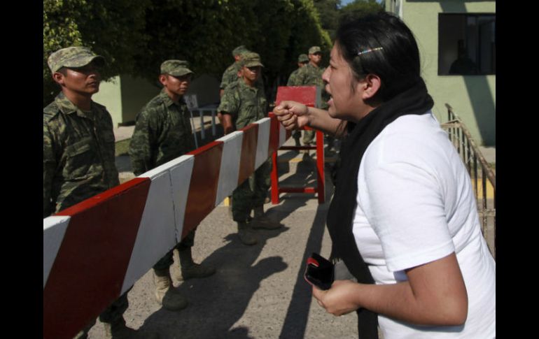 México | La Sedena informa que manifestantes pedían ingresar a buscar a los desaparecidos Normalistas y padres derriban reja en cuartel en Iguala La Sedena informa que manifestantes pedían que una comisión ingresara a buscar a los desaparecidos Por: SUN 15 de julio de 2015 - 15:50 hs Los estudiantes y familiares de los normalistas desaparecidos no pudieron ingresar al campo militar, informan. AP / ARCHIVO CIUDAD DE MÉXICO (15/JUL/2015).- La Secretaría de la Defensa Nacional (Sedena) informó que normalistas y padres de familia de los 43 desaparecidos de la normal de Ayotzinapa acudieron al 27 Batallón de Infantería, en Iguala, donde arrojaron piedras, cohetones y derribaron parte de una de las rejas de la puerta principal. En un comunicado, la dependencia señaló que aproximadamente a las 11:05 horas, el grupo de manifestantes llegó a las instalaciones para pedir que una comisión de derechos humanos pudiera ingresar en busca de los normalistas desaparecidos. “Las personas concentradas frente al cuartel militar arrojaron piedras y cohetones al interior de las instalaciones, asimismo, derribaron parte de la reja de la puerta principal, sin lograr ingresar al campo militar”, dijo. En ese sentido, mencionó que al ser agredidos con los proyectiles, el personal militar actuó para salvaguardar la integridad física del personal militar y de sus familias, así como de las instalaciones militares. La Sedena enfatizó que su actuar fue “apegando su actuación en todo momento a lo establecido en el Manual del Uso de la Fuerza, de aplicación común a las tres Fuerzas Armadas y con estricto apego y respeto a los Derechos Humanos”. Agregó que de los hechos tomaron nota el agente del Ministerio Público del Fuero Común y un agente del Ministerio Público Federal, así como un observador de la Comisión Estatal de Derechos Humanos. “Los integrantes del Ejército y Fuerza Aérea Mexicanos, ratifican que su actuación en todo momento y situación, es y será de amplio respeto a los derechos fundamentales y a la libertad que establece la Constitución Política de los Estados Unidos Mexicanos”, puntualizó. Temas Sedena Estados Guerrero Caso Ayotzinapa Lee También ¿Trum ganaría el Nobel de la Paz? Veteranos del Comité de premiación responden "Raymond" aparecerá en horas y afectará a estos estados por su trayectoria TODO sobre el frente frío que perturbará a México en horas Detienen a presunto extorsionador del sector limonero en Michoacán Recibe las últimas noticias en tu e-mail Todo lo que necesitas saber para comenzar tu día Registrarse implica aceptar los Términos y Condiciones