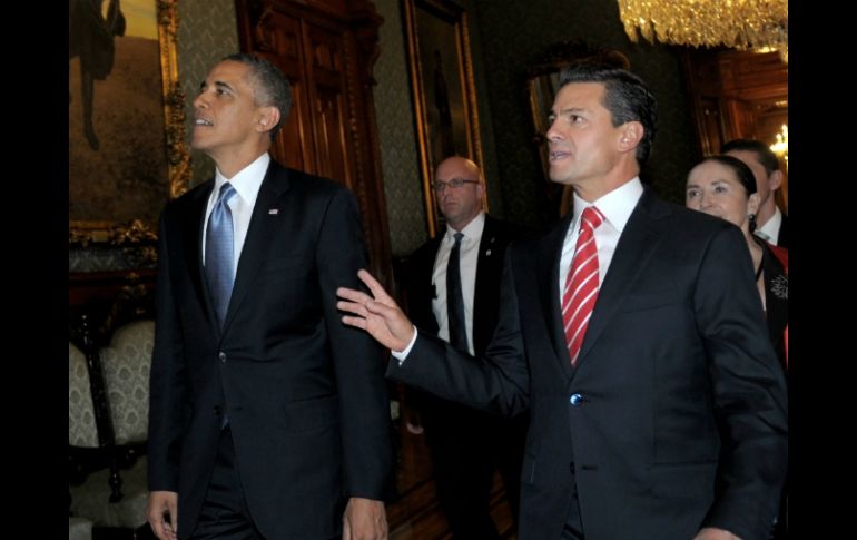 México | El presidente de Estados Unidos estará en una cena ofrecida por Peña Nieto Obama acude a Los Pinos para cena de gala El presidente de Estados Unidos estará en una cena ofrecida por el Presidente Peña Nieto Por: SUN 2 de mayo de 2013 - 18:53 hs CIUDAD DE MÉXICO (02/MAY/2013).- El convoy que traslada al presidente de Estados Unidos, Barack Obama, dejó la tarde-noche de este jueves el hotel donde se hospeda el mandatario en Polanco, para dirigirse a la residencia oficial de Los Pinos, poco después de las 19:00 horas. La comitiva arribó a la residencia oficial, en donde sería recibida por el Presidente de México, Enrique Peña Nieto. En un encuentro bilateral la tarde de este jueves, el mandatario estadounidense y el Presidente Peña Nieto recalcaron que la relación entre ambos países debe concentrarse en otros temas, además de la seguridad y la migración. Temas Gobierno de México Estados Unidos Enrique Peña Nieto Barack Obama Recibe las últimas noticias en tu e-mail Todo lo que necesitas saber para comenzar tu día Registrarse implica aceptar los Términos y Condiciones