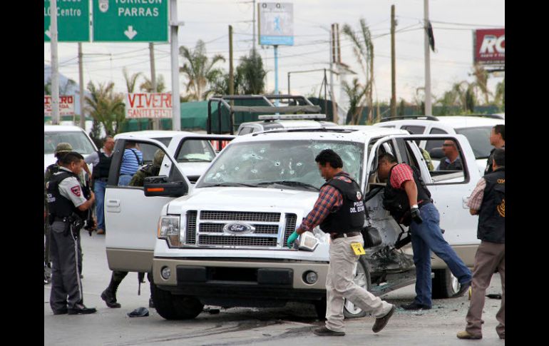 México | Algunos taxistas aseguran que continuaban las balaceras Ocho muertos por balacera en Saltillo El vocero para temas de seguridad pública del gobierno del estado, Sergio Sisbeles, informa que la situación ha sido controlada Por: SUN 21 de junio de 2012 - 20:09 hs Policías estatales y federales inspeccionan un vehículo luego de los enfrentamientos en la ciudad de Saltillo, Coahuila. AP / SALTILLO, COAHUILA (21/JUN/2012).- En una serie de enfrentamientos y persecuciones ocurridos la tarde de este jueves al norte de esta ciudad, la policía estatal y las fuerzas federales confrontaron a presuntos delincuentes, teniendo como resultado ocho muertos. El vocero para temas de seguridad pública del gobierno del estado, Sergio Sisbeles, informó que seis de los pistoleros murieron en la refriega y los otros dos en el hospital cuando eran atendidos por sus lesiones. Eran seis los heridos, tres policías estatales y tres delincuentes, de los cuales fallecieron dos, y a los demás se les reporta que su estado de salud no es de gravedad. Sisbeles dijo que se aseguraron al menos cuatro vehículos. Las cifras aún son preliminares, debido a que hubo caos y amenazas en contra de transeúntes y automovilistas; algunos fueron despojados de sus vehículos. Varias vialidades continúan cerradas por parte de la policía, como Paseo de la Reforma, Nazario Ortíz Garza y la Fragua, entre otras. Algunos taxistas aseguraron que continuaban las balaceras, y por precaución optaron por dejar de prestar sus servicios, aunque a las 18:40 horas, Sisbeles aseguró que la situación ya había sido controlada. Temas Estados Agresiones a policías Coahuila Lee También Trump anuncia aranceles del 100% para China por su postura comercial 'hostil' ¿Bad Bunny fuera del Super Bowl? Este sería el show alternativo Poza Rica, inundado por desbordamiento del río Cazones Bad Bunny permanece sentado durante "God Bless America" y enciende las redes Recibe las últimas noticias en tu e-mail Todo lo que necesitas saber para comenzar tu día Registrarse implica aceptar los Términos y Condiciones