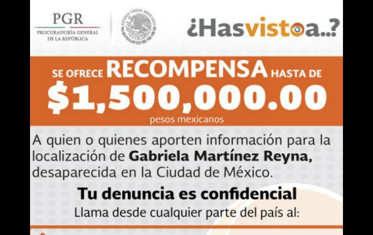 CIUDAD DE MÉXICO (03/OCT/2016).- Una recompensa de hasta un millón y medio de pesos ofreció la Procuraduría General de la República (PGR) a quien proporcione información sobre el paradero de 11 hombres y una mujer reportados como desaparecidos.La dependencia publicó en el Diario Oficial de la Federación (DOF) acuerdos en los que autoriza el pago de recompensas para el ciudadano que dé información oportuna y veraz que ayude a la localización de 12 personas y a la detención de sus captores.Los buscados son Karen Trejo Triana, Petronilo Germán Constante Gómez, Omar Yair Velázquez Luna, Marco Antonio Ramírez Hernández, Emmanuel Torres Ávalos, Héctor Daniel Morales Sánchez, Dither Gibrán Román Garduño, José Cruz Díaz Camarillo, Usiel Gómez Rivera, Diego Omar Guillén Martínez, José Fortino Martínez Martínez y Martín Rico García.El pago se realizará en un sólo pago o en exhibiciones.