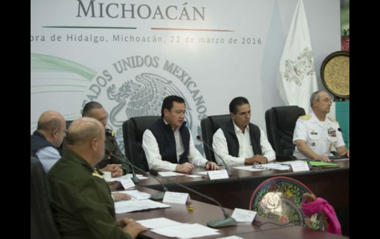 México | El titular de Segob evaluará acciones en la entidad en esta materia Osorio Chong encabeza reunión de seguridad en Michoacán El titular de Segob evaluará acciones en la entidad en esta materia Por: SUN 22 de marzo de 2016 - 13:21 hs Acciones de coordinación han mejorado las condiciones de seguridad, afirman. TWITTER / @segob_mx ZAMORA, MICHOACÁN (22/MAR/2016).- El secretario de Gobernación, Miguel Ángel Osorio Chong, encabezó una reunión en Michoacán para evaluar las acciones que se llevan a cabo en la entidad en materia de seguridad. De acuerdo con el encargado de la política interna del país, la reunión –que se realizó en Zamora, Michoacán-, se dio en el marco del compromiso establecido con el gobernador del estado, Silvano Aureoles, y la sociedad michoacana, para evaluar periódicamente las acciones de seguridad y programas integrales puestos en marcha en el estado. En el encuentro estuvieron presentes el gobernador Silvano Aureoles Conejo y los integrantes del Gabinete de Seguridad del Gobierno de la República, los secretarios de la Defensa Nacional, Salvador Cienfuegos Zepeda; de Marina, Vidal Francisco Soberón Sanz; el comisionado Nacional de Seguridad, Renato Sales Heredia; y el director general del Centro de Investigación y Seguridad Nacional, Eugenio Imaz Gispert. Osorio Chong supervisó el avance de los trabajos conjuntos para garantizar la seguridad de las y los michoacanos. Por su parte, Silvano Aureoles sostuvo que estas acciones de coordinación y supervisión han logrado mejorar las condiciones de seguridad y dan certeza de que se avanza con acciones firmes en conjunto con la Federación para garantizar un Michoacán en paz y tranquilidad. En la reunión también estuvo presente el general Felipe Gurrola Ramírez, Mando Especial de Seguridad en el estado. Temas Segob Michoacán Estados Miguel Ángel Osorio Chong Silvano Aureoles Lee También ¿Tormenta "Sonia" afectará a Jalisco en los próximos días? Ebrard buscará evitar imposición de aranceles en su visita a EU SAT: ¿Cómo saber si hay servicio tras el paro de trabajadores? SAT, abierto al diálogo después del paro de labores Recibe las últimas noticias en tu e-mail Todo lo que necesitas saber para comenzar tu día Registrarse implica aceptar los Términos y Condiciones