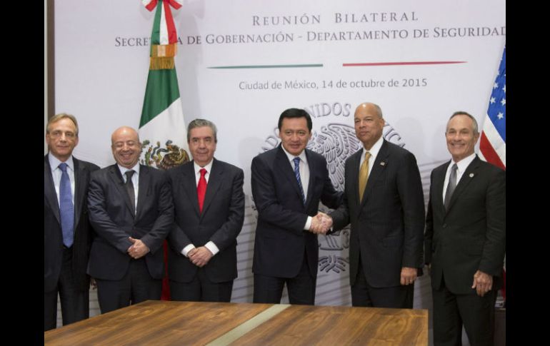 México | El secretario de Gobernación y el de Seguridad de EU dialogan sobre la agenda bilateral Osorio Chong se reúne en privado con Jeh Johnson El titular de la Segob y el secretario de Seguridad de EU conversan los avances de la agenda bilateral Por: SUN 14 de octubre de 2015 - 20:37 hs En el encuentro, los funcionarios abordan temas como migración, seguridad y cooperación bilateral. EFE / Segob CIUDAD DE MÉXICO (14/OCT/2015).- El secretario de Gobernación, Miguel Ángel Osorio Chong, y el secretario de Seguridad Interna de Estados Unidos, Jeh Johnson, sostuvieron un encuentro privado en el que abordaron temas como migración, seguridad y cooperación bilateral. Gobernación informó en un comunicado que los secretarios conversaron de los avances de la agenda bilateral y destacaron la buena relación y colaboración que existe entre los dos países. “El propósito del trabajo conjunto, coincidieron, es generar mayor bienestar y más oportunidades que permitan ampliar la cooperación entre México y Estados Unidos”, dijo la dependencia. A la reunión asistieron el subsecretario de Población, Migración y Asuntos Religiosos, Humberto Roque; el comisionado Nacional de Seguridad, Renato Sales; el director General del CISEN, Eugenio Ímaz; el comisionado del Instituto Nacional de Migración, Ardelio Vargas; el comisionado General de la Policía Federal, Enrique Galindo, y el coordinador de Asesores del Secretario, Guillermo Lerdo de Tejada. Por la delegación estadounidense participaron, Alan Bersin, subsecretario para Políticas y Asuntos Internacionales; Esther Olavarría, asesora del secretario Johnson en Temas Migratorios; William Duncan, encargado de Negocios de la Embajada de Estados Unidos en México; Paul Rosen, jefe Adjunto de Asesores del secretario, y Todd Breasseale, subsecretario de Prensa. Temas Gobierno de México Segob Estados Unidos Relaciones Exteriores Miguel Ángel Osorio Chong Lee También México y Estados Unidos refuerzan cooperación en seguridad fronteriza ¿Tormenta "Sonia" afectará a Jalisco en los próximos días? "Las Perdidas" serán anfitrionas de "La fiesta de disfraces mágicos Wicked" Crepúsculo: Fechas de re estreno en cines de México Recibe las últimas noticias en tu e-mail Todo lo que necesitas saber para comenzar tu día Registrarse implica aceptar los Términos y Condiciones