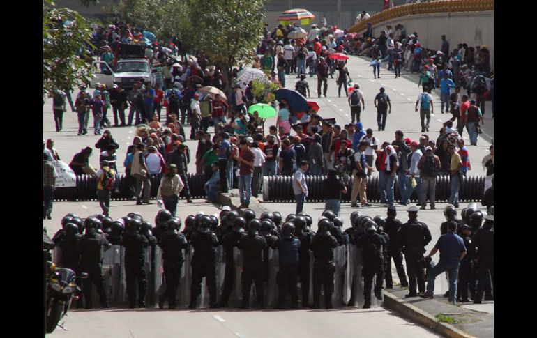 México | Los líderes magisteriales aseguran que habrá más diálogo, pero las marchas seguirán Osorio Chong y maestros terminan sin solución La Secretaría de Seguridad Pública del Distrito Federal (SSPDF) desplegó varios operativos para resguardar las zonas por las que marcharán los inconformes Por: SUN 12 de septiembre de 2013 - 12:40 hs Integrantes de la CNTE marcharon rumbo a la Cámara de Diputados y a la Secretaría de Gobernación. ARCHIVO / CIUDAD DE MÉXICO (12/SEP/2013).- Maestros de la Coordinadora Nacional de Trabajadores de la Educación ( CNTE) y el Secretario de Gobernación, Miguel Ángel Osorio Chong, concluyeron este día su diálogo en las instalaciones de la dependencia, el cual aseguraron los líderes magisteriales, no hubo avances, pero continuarán las negociaciones. Este día, integrantes de la CNTE marcharon rumbo a la Cámara de Diputados y a la Secretaría de Gobernación (Segob), en donde un contingente habló con el titular, Miguel Ángel Osorio Chong, sobre la Reforma Educativa. Ayer, los maestros realizaron varios bloqueos y se enfrentaron a agentes de Seguridad Pública del Distrito Federal. Al contingente de hoy se le unieron integrantes del Sindicato Mexicano de Electricistas (SME) y de otras organizaciones sindicales que conforman la Junta Promotora por la Construcción de una Nueva Central de Trabajadores y se trasladaron a diferentes puntos. Mientras tanto, en Gobernación, el Secretario Osorio Chong abandonó el recinto en su camioneta sin ofrecer declaración alguna, mientras que la comisión de la CNTE permanece en el interior. Luego de esto, los líderes de la Sección 22 de Oaxaca, la 9 del Distrito Federal y la 18 de Michoacán, dijeron que el Secretario ofreció estudiar sus peticiones y que esperan más pláticas con las autoridades. La Secretaría de Seguridad Pública del Distrito Federal (SSPDF) desplegó varios operativos para resguardar las zonas por las que marcharán los inconformes. Se recomendó a los habitantes de la Ciudad de México que, de ser necesario, no transiten por la zona o tomen sus previsiones para llegar a tiempo a sus destinos. Se prevé que el SME entregue un documento con su propuesta de elevar a rango de ley el derecho y acceso a la energía eléctrica. LA SSPDF dijo que los manifestantes se desplazarán por Paseo de la Reforma, realizarán un mitin frente a la Cámara de Senadores, donde también se ha instalado un dispositivo de seguridad con granaderos y Policía Federal. Las vías afectadas son : Paseo de la Reforma, Bucareli, Balderas, Morelos, Circunvalación, Fray Servando Teresa de Mier, Congreso de la Unión y Eduardo Molina. Por otra parte, un grupo de supuestos estudiantes del Colegio de Bachilleres Plantel Iztacalco cerraron la circulación en el Eje 3 Oriente con dirección al norte. La SSPDF desplegó a granaderos en el lugar, donde los jóvenes lanzaron petardos sin que se reporten personas lesionadas o daños en vehículos o inmuebles. Debido a los hechos el Sistema de Transporte Colectivo (STC-Metro) cerró de manera preventiva la estación Iztacalco, de la línea 8, en ambos sentidos. No se reporta la detención de ninguna persona y se prevé que las operaciones en la citada estación del Metro se restablezcan en breve. PRI PIDE NORMALIZAR LA VIDA DEL DF El presidente nacional del Partido Revolucionario Institucional (PRI) , César Camacho Quiróz, urgió a normalizar la vida en la ciudad de México y en todas las aulas a lo largo y ancho del país, al tiempo que consideró que la conmemoración del 203 aniversario de la Independencia de México es una buena oportunidad para la concordia. Respecto a las manifestaciones que realizan los maestros de la CNTE en el Distrito Federal, el líder priista señaló que es respetable hacer valer una opinión, en tanto no vulnere y no trastoque la vida cotidiana de los capitalinos. Tras señalar que la tolerancia hacia los mentores ha sido suficiente, recalcó que a la entrada en vigor de las leyes secundarias en materia educativa, lo que procede es una correcta y oportuna aplicación de la legislación. Los profesores tienen derechos salvaguardados por la ley, pero también tienen la obligación de cumplir su tarea de formar niños y jóvenes, quienes esperan impacientes que estos cumplan su deber laboral y ético, que desplieguen la vocación por la que optaron cuando decidieron ser profesores, indicó. PAN PIDE A CNTE LEVANTAR PLANTÓN Por otra parte, el presidente de la Cámara de Diputados, Ricardo Anaya Cortés, exhortó a la CNTE a retirar su plantón del Zócalo capitalino y permitir la ceremonia del Grito de Independencia y el desfile militar. “Hacemos un llamado a que respeten las tradiciones, particularmente la del Grito de Independencia, que respeten las instituciones como es el Ejército y la Armada de México que tienen programado su desfile militar tradicional y que también regresen a las aulas”, expuso. En entrevista mencionó que los gobiernos federal y de la Ciudad de México agotan la vía del diálogo para que los integrantes de la CNTE se retiren de la Plaza de la Constitución y que la Cámara de Diputados respalda sus acciones. Consideró que los maestros disidentes tienen derechos, pero éstos terminan donde empiezan los de los demás y debe prevalecer el de los niños que no tienen clases por el paro laboral que mantiene esta organización en varios estados del país. PARO CÍVICO AYER, CON HERIDOS El Paro Cívico Nacional convocado por maestros de la Coordinadora Nacional de Trabajadores de la Educación (CNTE) paralizó ayer la capital del país y dejó un saldo de al menos 17 policías y un maestro lesionados tras dos enfrentamientos entre guardias capitalinos y docentes que primero pretendían bloquear Periférico y Reforma y después, a la Altura de Torre Mayor, agredieron a policías con piedras y tubos. La convocatoria de la CNTE tuvo eco en Aguascalientes, Baja California, Baja California Sur, Chiapas, Durango, Guan