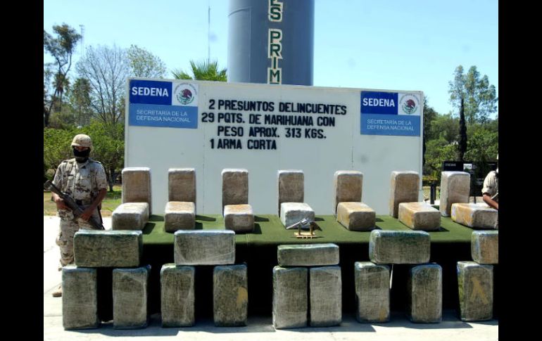 México | La detención tuvo lugar en el fraccionamiento Villa Fontana, en Mexicali PGR consigna a detenidos con 330 kilos de mariguana en Baja California Según informes de la PGR, La dependencia federal informó que Armando Ríos Labrada, Jesús Esaú Trujillo López y Jesús Rafael Gastélum León, fueron consignados por delitos a la salud por encontrarse en posesión de más de 300 kilos de mariguana Por: NTX 20 de agosto de 2011 - 15:22 hs El decomiso se logró gracias a la revisión de elementos del Ejército a una camioneta Pick up Sierra. NTX / CIUDAD DE MÉXICO (20/AGO/2011).- La Procuraduría General de la República (PGR) ejercitó acción penal contra tres detenidos por elementos del Ejército mexicano en Baja California, quienes tenían en su poder más de 300 kilos de mariguana. La dependencia federal informó que Armando Ríos Labrada, Jesús Esaú Trujillo López y Jesús Rafael Gastélum León, fueron consignados por su presunta responsabilidad en la comisión de delitos contra la salud en su modalidad de posesión de drogas. La aprehensión se dio cuando efectivos del Ejército mexicano realizaban un patrullaje en el fraccionamiento Villa Fontana, en Mexicali, donde detuvieron para una revisión a una camioneta Pick up Sierra, modelo 2002, color negro, en la que se encontraban los sospechosos. En el interior del vehículo se localizaron 56 paquetes que contenían mariguana con un peso total de 332 kilos 600 gramos, se informó en un comunicado. Por estos hechos el Ministerio Público inició la averiguación previa AP/PGR/BC/MXL/1221/1, y tras reunir los elementos de prueba, consignó a los detenidos por los delitos mencionados. Temas Narcotráfico Estados Baja California Lee También Trump amenaza con "incremento masivo" de aranceles a China El efecto Donald Trump Mundial Sub-20: EU golea a Italia y enfrentará a Marruecos ALERTA en Jalisco por formación de ciclón "Raymond" Recibe las últimas noticias en tu e-mail Todo lo que necesitas saber para comenzar tu día Registrarse implica aceptar los Términos y Condiciones