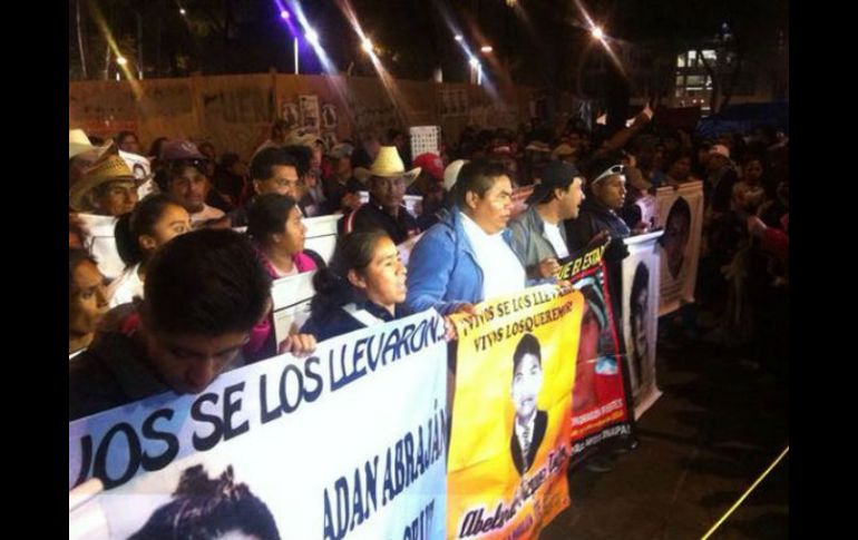 México | Se manifiestan para exigir el regreso con vida de los desaparecidos Padres de los normalistas marchan a Los Pinos Se manifiestan para exigir el regreso con vida de los desaparecidos Por: SUN 31 de diciembre de 2014 - 19:00 hs La marcha denominada 'El Año Nuevo la Cena con Ayotzi' es encabezada por los padres de los estudiantes. TWITTER / @YoSoy132SC CIUDAD DE MÉXICO (31/DIC/2014).- Padres y familiares de los 43 normalistas desaparecidos se concentraron frente a la Procuraduría General de la República (PGR) para luego marchar rumbo a la Residencia Oficial de Los Pinos para exigir el regreso con vida de los normalistas. La marcha denominada "El Año Nuevo la Cena con Ayotzi" es encabezada por los padres de los jóvenes estudiantes entregados por las policías municipales de Iguala y Cocula al crimen organizado el pasado 26 de septiembre. Los familiares marcharonn sobre el carril lateral de Paseo de la Reforma, debido a que los carriles centrales están ocupados para que los ciudadanos esperen el Año Nuevo, para dirigirse a Los Pinos. Con consignas como "¡los queremos de regreso con vida!" y "¡gobierno represor!" el contingente de unas 300 personas lo encabezaron los familiares de los normalistas, seguidos por las personas que mantienen el plantón frente al edificio de la PGR. Visitadores de la Comisión Nacional de los Derechos Humanos (CNDH) acompañaron también a los manifestantes que exigen el regreso con vida de los normalistas desaparecidos en Iguala, Guerrero, el pasado 26 de septiembre. Entre las exigencias de hoy está la presentación inmediata y con vida de los normalistas, libertad inmediata de todos los presos políticos, alto a la persecución y al hostigamiento en contra de organizaciones sociales y activistas. Temas Estados Guerrero Manifestaciones en la Cd. de México Desapariciones y denuncias Caso Ayotzinapa Lee También Clima en Ciudad de México hoy: el pronóstico para el sábado 11 de octubre de 2025 Trump anuncia aranceles del 100% para China por su postura comercial 'hostil' Hoy No Circula Sabatino: Autos que descansan este 11 de octubre en CDMX y Edomex Detienen a Miguel Ángel 'N', vinculado por el homicidio del sacerdote Bertoldo Pantaleón Recibe las últimas noticias en tu e-mail Todo lo que necesitas saber para comenzar tu día Registrarse implica aceptar los Términos y Condiciones