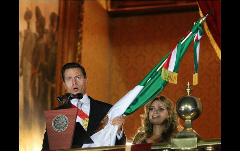 CIUDAD DE MÉXICO (16/SEP/2016).- Ante miles de personas que se reunieron en la plancha del Zócalo, el Presidente de México, Enrique Peña Nieto, dio el Grito de Independencia para conmemorar el 206 aniversario del inicio de la Guerra de Independencia de México.El Mandatario, acompañado de la primera dama, Angélica Rivera, salió al balcón de Palacio Nacional al filo de las 23:00 horas y recibió el Lábaro Patrio de manos de una escolta.Portando la Bandera Nacional, el Mandatario lanzó vivas a los héroes de la Independencia, tras lo cual repitió tres veces el grito de “¡Viva México!”, coreado por decenas de miles de personas congregadas en la plaza.Al concluir con el acto protocolario, se realizó una exhibición de fuegos artificiales.El Presidente observó la exhibición de pirotecnia desde el balcón del Palacio Nacional, acompañado de miembros de su familia e integrantes de su Gabinete, así como invitados especiales. En el Zócalo se realizaron otras actividades artísticas y una verbena popular para conmemorar la fecha.A lo largo del día, a través de redes sociales, se denunció que centenares de personas fueron trasladadas al evento a bordo de autobuses. Muchos de ellos procedían del Estado de México.La ceremonia de este año se realizó bajo la sombra de una marcha que unas 10 mil personas protagonizaron por la tarde en la capital para exigir la renuncia del Presidente. La Secretaría de Seguridad Pública capitalina estableció un estricto operativo de vigilancia y movilidad. Se informó del despliegue de cuatro mil 500 policías.