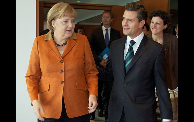 México | El priista abordó temas de economía y energía renovables en la reunión Peña Nieto considera positivo su encuentro con Angela Merkel El político mexiquense consideró que su encuentro con Merkel es positivo porque sin duda abona a la buena relación e identificación de ambos como jefes de estado Por: NTX 11 de octubre de 2012 - 10:27 hs La canciller de Alemania, Angela Merkel, recibiendo al presidente electo de México, Enrique Peña Nieto. EFE / BERLÍN, ALEMANIA (11/OCT/2012).- El presidente electo de México, Enrique Peña Nieto calificó de positivo su encuentro con la canciller Angela Merkel, quien le ofreció que a partir del 1 de diciembre, aportará la experiencia de ese país en materia de generación de energías renovables. Tras su encuentro privado de 45 minutos con la canciller alemana, Peña Nieto reconoció que México necesita ampliar su participación en esta materia, en donde Alemania es líder mundial y se pronunció por alentar el libre comercio a fin de que haga posible la presencia de productos mexicanos en otros países. En un mensaje a los representantes de los medios de comunicación, el político mexiquense consideró que su encuentro con Merkel es positivo porque sin duda abona a la buena relación e identificación de quienes tienen responsabilidad pública como jefes de Estado. Reconoció el liderazgo político que la canciller ha tenido para apoyar y resolver el conflicto por el que atraviesa la comunidad europera. Refirió que en su encuentro con la política alemana hizo votos porque haya una solución pronta al problema económico en la región y esto favorezca a la relación que Mèxico guarda con toda la comunidad europea. Temas Política Enrique Peña Nieto Angela Merkel Lee También Tragedia con dividendos: el negocio político del desastre en México Por una ciencia social rigurosa 72 años del voto femenino: ¿En qué piso estamos? Raymundo Riva Palacio: El asesinato que no quieren investigar Recibe las últimas noticias en tu e-mail Todo lo que necesitas saber para comenzar tu día Registrarse implica aceptar los Términos y Condiciones