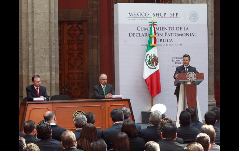 México | El Presidente presenta su declaración patrimonial, posee nueve propiedades Peña Nieto declara tener sueldo de 193 mil 478 pesos Además del Mandatario, los integrantes de su gabinete también publicaron su declaración patrimonial Por: NTX 16 de enero de 2013 - 11:23 hs CIUDAD DE MÉXICO (16/ENE/2013).- El Presidente Enrique Peña Nieto presentó su declaración patrimonial en un evento en Palacio Nacional, donde registró cuatro casas, cuatro terrenos y un departamento, además de obras de arte, joyas y cuentas bancarias. Declaró además percibir un ingreso mensual neto de 193 mil 478 pesos. Además del Presidente, los integrantes de su gabinete también publicaron su declaración patrimonial. En sus bienes-muebles, Peña Nieto informó contar con relojes, muebles y accesorios, obtenidos por herencias, donaciones o pagos de contado, según su declaración disponible para revisión en la página www.presidencia.gob.mx/gabinete. En inversiones, el jefe del Ejecutivo Federal declaró una cuenta bancaria y otra de fondos de inversión, sin precisar montos ni las instituciones bancarias, además de contar con monedas y metales. En el rubro de vehículos, no proporcionó información en torno a marcas o modelos ni de adeudos. En su declaración, el presidente Peña Nieto detalló que sus casas, terrenos y departamento fueron obtenidos por pago de contado, donaciones y herencias. Una casa tiene una superficie de 560 metros cuadrados, pagada al contado; otra mide dos mil 138 metros cuadrados, también al contado; las dos restantes fueron producto de donación y las superficies son de 150 y 338 metros cuadrados. El departamento que declara cuenta con una superficie de 211 metros cuadrados y es resultado de una herencia. En tanto, los terrenos tienen medidas de dos mil 547 metros cuadrados, 58 mil 657, mil y 24 mil metros cuadrados, cada uno, todos recibidos por donación. Declaraciones de secretarios En la página está disponible también información de sus principales colaboradores, como el secretario de Gobernación, Miguel Ángel Osorio Chong quien percibe un salario mensual neto de 151 mil 049 pesos. En bienes inmuebles, el encargado de la política interior posee un departamento y cuatro terrenos, mismo que han sido pagados en contado. Además tiene una cuenta bancaria y una de fondos de inversión; en materia de adeudos, el funcionario informó que tiene dos saldos pendientes con tarjetas de crédito, sin especificar montos ni las instituciones bancarias. La declaración no proporciona información sobre vehículos y bienes muebles a su nombre. En el caso del secretario de Hacienda, Luis Videgaray Caso, detalló que gana mensualmente 145 mil 284 pesos mensuales, reportó que posee una casa cuya superficie de terreno es de mil 500 metros cuadrados, pagada de contado y cuyo registro público de la propiedad se encuentra en trámite. Videgaray Caso posee tres vehículos: dos de la marca Honda y uno GMC, adquiridos de contado, modelos que van de 2002 a 2007. Además, el secretario de Hacienda informó que posee joyas y obras de arte, así como muebles y accesorios de casa también pagados de contado. En sus inversiones, informó que tiene dos cuentas bancarias y una de inversión. A su vez, el secretario de la Defensa, Salvador Zepeda Cienfuegos posee cuatro casas, tres de ellas pagadas de contado y la restante a crédito; además de que percibe un salario mensual neto de 200 mil pesos. Posee dos vehículos, un chevy modelo 1999 y una suburban 2001, mismos que han sido pagados al contado. Tiene una cuenta bancaria y adeuda, según la página de Internet, una tarjeta de crédito. Temas Gobierno de México Enrique Peña Nieto PRI Lee También "La Mañanera" de Sheinbaum de hoy jueves 16 de octubre de 2025 Hernán cuida a Adán y ataca a Audomaro Cohen y el asesino del casco azul Sin ratificación Recibe las últimas noticias en tu e-mail Todo lo que necesitas saber para comenzar tu día Registrarse implica aceptar los Términos y Condiciones