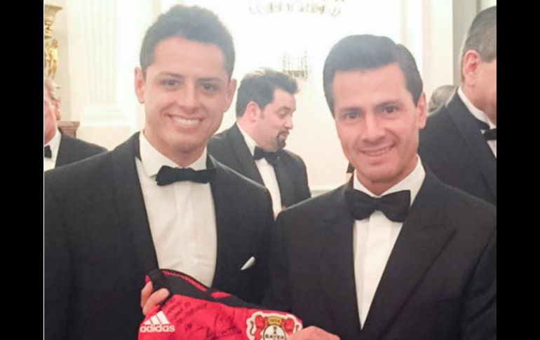México | 'Sigue mirando alto, @Mexico te acompaña', escribe el Mandatario en cuenta de Twitter Peña Nieto destaca perseverancia y pasión del 'Chicharito' ''Sigue mirando alto, @Mexico te acompaña'', escribe el Mandatario en cuenta de Twitter Por: SUN 12 de abril de 2016 - 09:38 hs CIUDAD DE MÉXICO (12/ABR/2016).- En su visita de Estado a Alemania, el Presidente Enrique Peña Nieto destacó la tenacidad de Javier “ Chicharito” Hernández a lo largo de su trayectoria futbolística. “Tu pasión y perseverancia merecen toda nuestra admiración, @CH14_. Sigue mirando alto, @Mexico te acompaña”, escribió el Mandatario en su cuenta de Twitter. La noche de ayer lunes, Hernández y su novia, Lucía Villalón, estuvieron presentes en la cena que brindó el presidente de Alemania, Joachim Gauck, a su homólogo mexicano y su comitiva. Asimismo, Hernández Balcázar le obsequió a Enrique Peña Nieto una playera autografiada del Bayer Leverkusen, club donde juega. El Ejecutivo federal también reconoció el talento de la bailarina Elisa Carrillo. "Cuando salgo al escenario quien baila es @Mexico". @ElisaCarrilloC, Primera Bailarina de la Ópera de Berlín", mencionó Peña Nieto a través de Twitter. Temas Gobierno de México Alemania Giras presidenciales Enrique Peña Nieto Javier 'Chicharito' Hernández Recibe las últimas noticias en tu e-mail Todo lo que necesitas saber para comenzar tu día Registrarse implica aceptar los Términos y Condiciones