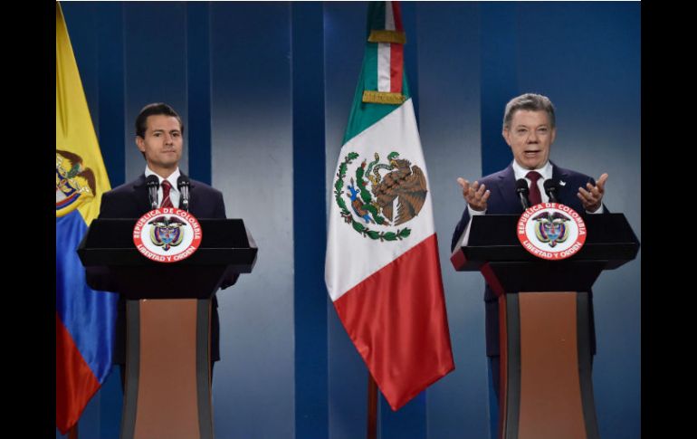 CIUDAD DE MÉXICO (27/OCT/2016).- El Presidente Enrique Peña Nieto felicitó personalmente al mandatario de Colombia, Juan Manuel Santos, por la distinción de alcanzar el Premio Nobel de la Paz, así como al pueblo colombiano por su lección de democracia con el plebiscito en torno a los acuerdos con las FARC.En el marco de la visita de Estado a Colombia, el Mandatario mexicano resaltó la inquebrantable lucha, esfuerzo permanente y firme voluntad política por alcanzar un acuerdo de paz verdadera.Tras atestiguar la firma de varios acuerdos y documentos de entendimiento entre ambas naciones, el Presidente Peña Nieto dijo que México reitera invariable su disposición para acompañar a Colombia en este esfuerzo de paz que el presidente Santos con gran visión se ha trazado.El titular del Ejecutivo felicitó también al pueblo colombiano por la gran lección de democracia que ha dado al hemisferio con el plebiscito que siguió a los acuerdos de paz lo que acredita el avance democrático de ese país.Colombia, agregó, se erige como un gran ejemplo de país democrático que respeta a sus mayorías.Asimismo, el mandatario mexicano reconoció los problemas que enfrentan ambas naciones en materia de crimen organizado donde tenemos presencia de organizaciones trasnacionales que operan en los dos países.