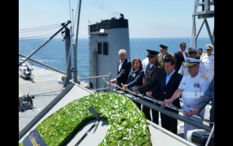 México | Destaca su labor en beneficio de la sociedad mexicana Peña Nieto felicita a la Marina Armada de México Destaca su labor en beneficio de la sociedad mexicana Por: NTX 1 de junio de 2015 - 13:18 hs El Presidente de México lanza al mar una ofrenda en memoría de los marinos caídos en el cumplimiento de su deber. FACEBOOK / @SEMAR_mx CIUDAD DE MÉXICO (01/JUN/2015).- México es plataforma logística natural privilegiada y única para el comercio marítimo, y en estos dos años de gobierno hemos trabajado en favor de la productividad de la marina mercante, señaló el Presidente Enrique Peña Nieto. Al encabezar la Ceremonia Conmemorativa al Día de la Marina 2015, el Mandatario destacó que el sector marítimo ha registrado avances logísticos y estructurales importantes, y prueba de ello es que se están consolidando dos sistemas portuarios, en el Golfo y en el Pacífico, que estarán conectados a través de tres corredores multimodales. Detalló que esos corredores son el del Norte, el del Centro y el de Tehuantepec, además de que se está dando un renovado impulso al cabotaje, que significa la navegación dentro de un mismo país con rutas cercanas a la costa y que representa una alternativa segura, sustentable y competitiva. Asimismo, el Primer Mandatario enfatizó el impulso al turismo de crucero en el que en 2014 se recibió a más de 5.5 millones de pasajeros, lo que fue 28 por ciento superior a 2013. Refirió que de mar adentro se extrae el 78 por ciento del petróleo y 51 por ciento del gas nacional, por lo que al término de la presente administración, Petróleos Mexicanos (Pemex) contará con 41 embarcaciones nuevas, entre otros avances. Acompañado por el titular de la Secretaría de Marina, Vidal Francisco Soberón Sanz, y otros integrantes de su gabinete, el Presidente Peña Nieto resaltó también el crecimiento que ha tenido la pesca nacional, y agregó que se han llevado acciones en apoyo a la modernización de embarcaciones. Asimismo, puntualizó que el Puerto de Ensenada será el primero a nivel nacional en certificarse como Puerto Verde, lo que significa que cumplirá con elevadas normas internacionales para tener una operación sustentable y amigable con el medio ambiente. Previo a este evento, el Primer Mandatario acudió al buque Usumacinta A-412, en donde presidió la ceremonia solemne de evocación a los marinos que perdieron la vida en el cumplimiento de su deber, en donde se depositó una ofrenda floral en la mar. En este acto, el director de infraestructura y operaciones marítimas de PMI Comercio Internacional, José Luis Hernández Abdalah, expresó que "la ofrenda que hoy se les hace a lo marinos caídos y que se deposita en la superficie acuática, habrá de sumergirse en el océano llevando consigo un mensaje de reconocimiento y gratitud de parte de todos aquellos que seguimos sus pasos a bordo de los barcos". Tras dejar la ofrenda, se escuchó el toque de silencio para concluir dicho acto solemne. Posteriormente, el Ejecutivo federal encabezó la ceremonia de abanderamiento del buque San Jorge, para reconocerlo como una embarcación mexicana, en donde se realizó el protocolo y se izó la bandera mexicana tras lo cual se entonó el Himno Nacional. Después de este evento, el Primer Mandatario visitó la exposición marítima en el Museo Estatal de Arte, en donde recorrió la exposición que muestra los diferentes aspectos de este sector. En estos eventos, el Presidente estuvo acompañado también por los titulares de las secretarías de la Defensa Nacional, Salvador Cienfuegos Zepeda; de Comunicaciones y Transportes, Gerardo Ruiz Esparza, y del Medio Ambiente y Recursos Naturales, Juan José Guerra Abud. Así como de la titular de la Procuraduría General de la República, Arely Gómez, y del gobernador de la entidad, Francisco Arturo Vega de Lamadrid. Temas Gobierno de México Enrique Peña Nieto Semar Lee También Hoy No Circula Sabatino: Autos que descansan este 11 de octubre en CDMX y Edomex CURP biométrica : ¿Dónde sacar cita para el trámite en CDMX? Detienen a Lex Ashton 'N' por homicidio y tentativa de homicidio Fallece influencer Fede Dorcaz en presunto intento de robo en la CDMX Recibe las últimas noticias en tu e-mail Todo lo que necesitas saber para comenzar tu día Registrarse implica aceptar los Términos y Condiciones