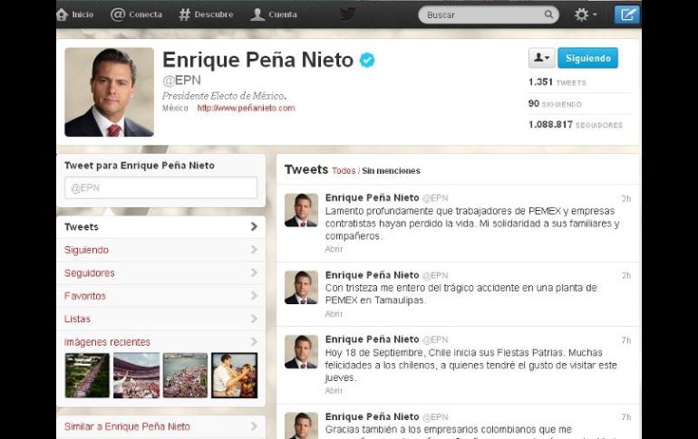 México | El Presidente electo se expresa a través de su cuenta de Twitter Peña Nieto lamenta muerte de trabajadores en planta de Pemex Expresa solidaridad con familiares y compañeros de los fallecidos Por: NTX 18 de septiembre de 2012 - 21:35 hs Peña Nieto se encuentra de gira por Latinoamérica. ESPECIAL / CIUDAD DE MÉXICO (18/SEP/2012).- El presidente electo, Enrique Peña Nieto, lamentó vía Twitter el accidente en la planta de Petróleos Mexicanos (Pemex) en Reynosa, Tamaulipas, que provocó la muerte de 26 trabajadores y 46 lesionados. A través de su cuenta @EPN, escribió: "Con tristeza me entero del trágico accidente en una planta de Pemex en Tamaulipas." En otro mensaje en la misma red social, el político mexiquense, anotó "lamento profundamente que trabajadores de Pemex y empresas contratistas hayan perdido la vida. Mi solidaridad a sus familiares y compañeros". Temas Pemex Enrique Peña Nieto Estados Tamaulipas Recibe las últimas noticias en tu e-mail Todo lo que necesitas saber para comenzar tu día Registrarse implica aceptar los Términos y Condiciones