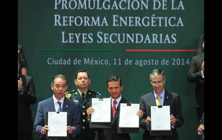 México | Luego de un intenso debate en el Congreso de la Unión, la legislación es aprobada Peña Nieto promulga leyes secundarias energéticas Luego de un intenso debate en el Congreso de la Unión, la legislación es aprobada Por: SUN 11 de agosto de 2014 - 11:14 hs CIUDAD DE MÉXICO (11/AGO/2014).- El Presidente Enrique Peña Nieto promulgó este lunes en Palacio Nacional las leyes secundarias de la reforma energética. Con la promulgación, especialistas esperan la llegada de inversiones privadas en el sector, así como generación de más empleos. Dentro de las leyes aprobadas destacan las de Pemex, la Comisión Federal de Electricidad, Hidrocarburos, de Ingresos sobre Hidrocarburos, Órganos Reguladores y del Fondo Mexicano del Petróleo. Luego de tres meses de discusión formal, el miércoles pasado el Congreso de la Unión aprobó en su totalidad las leyes que norman la apertura de los sectores eléctrico y petrolero del país a los capitales privados nacionales y extranjeros. Al evento asistieron miembros del gabinete federal, representantes de los partidos políticos, legisladores, gobernadores empresarios y otros personajes de la escena política nacional. El Partido de la Revolución Democrática (PRD) ha mantenido una postura en contra de la legislación y ha convocado a una consulta ciudadana sobre ella que está programada para el próximo año, a través de la recolección de millones de firmas. Temas Gobierno de México Reforma Energética Congreso Enrique Peña Nieto Recibe las últimas noticias en tu e-mail Todo lo que necesitas saber para comenzar tu día Registrarse implica aceptar los Términos y Condiciones