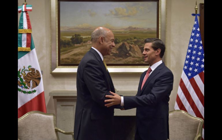 México | El Ejecutivo sostiene una reunión privada con el secretario de Seguridad Interna de EU Peña Nieto recibe a Jeh Johnson en Los Pinos El Ejecutivo sostiene una reunión privada con el secretario de Seguridad Interna de EU Por: SUN 14 de octubre de 2015 - 21:38 hs Antes de llegar a la residencia presidencial, Johnson se reunió con Osorio Chong en la Secretaría de Gobernación. EFE / Presidencia CIUDAD DE MÉXICO (14/OCT/2015).- La noche de este miércoles el Presidente Enrique Peña Nieto sostiene una reunión privada con el secretario de Seguridad Interna de Estados Unidos Jeh Johnson. El encuentro se desarrolla en privado en la Residencia Oficial de Los Pinos y participan además los secretarios de Gobernación, Miguel Osorio y de Relaciones Exteriores, Claudia Ruiz Massieu. Previamente, Johnson tuvo una reunión en privado con el titular de la Segob y con la canciller mexicana, con quienes dialogó por separado sobre la agenda de temas de interés bilateral. Temas Gobierno de México Estados Unidos Enrique Peña Nieto Relaciones Exteriores Recibe las últimas noticias en tu e-mail Todo lo que necesitas saber para comenzar tu día Registrarse implica aceptar los Términos y Condiciones