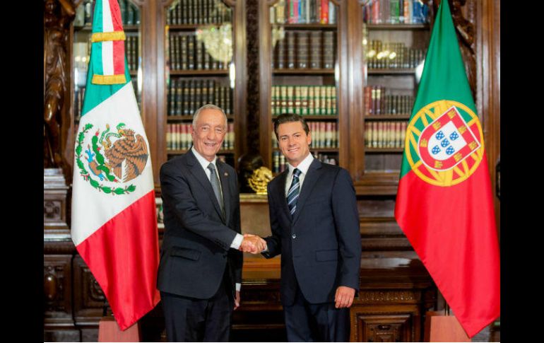 CIUDAD DE MÉXICO (17/JUL/2017).- Los presidentes de México y Portugal, Enrique Peña Nieto y Marcelo Rebelo de Souza, acordaron incrementar el intercambio comercial entre ambas naciones, fomentar mayores inversiones de empresarios en los dos mercados y apuntalar el turismo reciproco.Este mediodía, el Presidente Peña Nieto recibió en Palacio Nacional, con honores militares, a su homólogo portugués quien realiza una visita de Estado a México acompañado por una delegación empresarial.Tras trabajar en privado, en un mensaje conjunto a medios de comunicación, el Presidente de México destacó que en su encuentro privado acordaron trabajar de manera conjunta para impulsar los intercambios comerciales entre las dos naciones.Hizo notar que México es ya el segundo socio comercial de Portugal en América Latina y que anualmente tienen un intercambio comercial de 600 millones de dólares, destacando el comercio en hidrocarburos, automóviles y otras manufacturas."Coincidimos que es un buen momento para aprovechar nuevas áreas de oportunidad y por ello celebro que el presidente Rebelo este acompañado por una amplia delegación empresarial a la que le doy la más cordial bienvenida", indicó Peña Nieto.El Jefe del Estado Mexicano indicó que en este rubro planteó al presidente Rebelo la importancia para México de contar con el apoyo de Portugal en el proceso de negociación del Acuerdo Global que México está trabajando con la Unión Europea.Agregó que además se seguirá impulsando la inversión portuguesa en México y una mayor presencia de empresas y productos mexicanos en Portugal. Hizo notar que de la inversión total de Portugal en México, registrada desde 1999, una tercera parte se ha dado en los últimos cuatro años.Aseveró que México se ha convertido en uno de los destinos prioritarios de la inversión portuguesa en América Latina, pues hoy más de 160 empresas portuguesas participan en sectores como el energético, el tecnológico o la construcción, así como en las industrias aeroespacial y automotriz."También hemos decidido promover de manera importante el turismo. México se ha consolidado como uno de los destinos turísticos más importantes del mundo y también hemos apreciado un incremento en el número de turistas de Portugal a nuestro país."Y nos hemos propuesto promover el turismo reciproco, de portugueses a nuestro país como de mexicanos que visitan Europa, lo hagan de manera muy particular a Portugal", dijo para subrayar que además acordaron seguir fomentando la cooperación en ciencia y tecnología y mantener los intercambios educativos y culturales.
