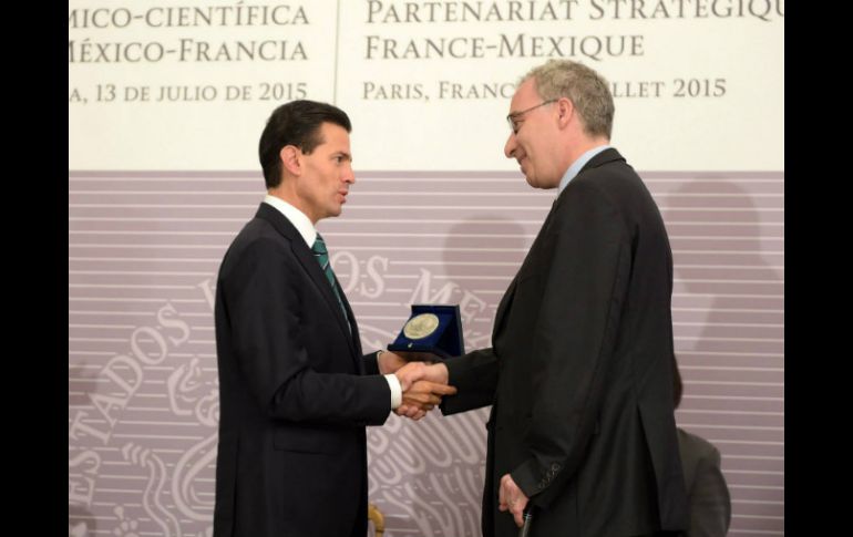 México | Por el intercambio académico y la investigación entre ambas naciones Peña Nieto recibe en Francia la Medalla de La Sorbona En la ceremonia, se firman 12 acuerdos de intercambio y cooperación científica y tecnológica Por: NTX 13 de julio de 2015 - 07:02 hs PARÍS, FRANCIA (13/JUL/2015).- Enrique Peña Nieto se convirtió en el primer Presidente mexicano en recibir la Medalla de La Sorbona, que Francia entrega a los jefes de Estado que impulsan el intercambio académico y la investigación científica y tecnológica entre ambas naciones. La condecoración, que lleva el nombre de Gran Medalla de la Cancillería de las Universidades de París, considera a los mandatarios que la reciben como "amigos de las universidades de París". En la ceremonia, en la que se firmaron 12 acuerdos de intercambio y cooperación científica y tecnológica, el Presidente mexicano destacó que dichos instrumentos bilaterales imprimen una nueva vitalidad entre México y Francia, que entre algunos aspectos relevantes, incrementa el intercambio de estudiantes. Por ello, destacó en el primer evento en su visita de Estado que realiza al país europeo, "es precisamente con las instituciones de Francia y México dedicadas a la investigación, al trabajo de la ciencia, la innovación y la academia". En el acto realizado en la Casa de América Latina, el Mandatario mexicano sostuvo que el desarrollo de las sociedades de ambas naciones, "dependerá en mucho de lo que sembremos en nuestras juventudes para que tengan las capacidades necesarias para hacer frente a los desafíos del Siglo 21". Hoy nos estamos acercando a través de estos ámbitos en los que Francia tiene éxito, para enriquecer el área de la ciencia e innovar en todo lo necesario para alcanzar un mayor nivel de desarrollo de nuestras sociedades, dijo el Mandatario mexicano en su mensaje. En el evento en el que participaron la secretaria de Salud, Mercedes Juan; el director del Conacyt, Enrique Cabrero, y el rector de la UNAM, José Narro, indicó que lo anterior permitirá incrementar las capacidades del país, tener mejor capacitación del personal médico y mayor calidad en la atención que se le da a los mexicanos. Los acuerdos, dejan ver con toda transparencia este espacio renovado de la relación entre Francia y México que han impulsado, en colaboración con el presidente François Hollande, para que en este nuevo momento en la relación, tengamos esfuerzos compartidos en distintos ámbitos, para que nuestras sociedades vivan con una mayor calidad de vida, apuntó. En este mundo global, que exige más a partir de la competencia mundial, "los esfuerzos propios serían insuficientes", comentó el mandatario, por lo que en su visita de Estado, tiene un espacio importante la firma de diversos acuerdos. Peña Nieto enfatizó que México celebra la disposición, la apertura y el ánimo de cooperación que Francia ofrece para crecer y trabajar juntos, así como la colaboración de los rectores de las universidades para crecer en la ciencia y el intercambio académico. Celebró el alto número de estudiantes franceses que deciden estudiar en México, así como los mexicanos que convierten a Francia en el tercer destino académico más importante a nivel mundial. Subrayó que esta visita de Estado es histórica, porque es la primera vez que México es país invitado de honor a la Fiesta Nacional de Francia, lo que da testimonio del nuevo momento que vive la relación bilateral. El presidente mexicano agradeció la entrega de la Medalla de la Sorbona y aseveró que este acercamiento permitirá aprovechar experiencias de éxito, para que puedan ser compartidas entre ambos países y depare a sus sociedades mejores condiciones. Temas Gobierno de México Francia Giras presidenciales Enrique Peña Nieto Lee También Desfile de Alebrijes Monumentales, ruta y hora del evento HOY en CDMX Así es como el minimalismo ha impactado en la cultura mexicana Desfile de Alebrijes 2025: Horario y calles cerradas en CDMX Marcha Zombie 2025: Calles cerradas y alternativas viales en CDMX Recibe las últimas noticias en tu e-mail Todo lo que necesitas saber para comenzar tu día Registrarse implica aceptar los Términos y Condiciones