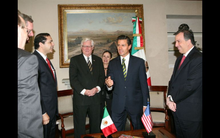 México | Reafirma su compromiso de continuar la cooperación bilateral en temas de seguridad Peña Nieto se reúne con legisladores de EU Reafirma su compromiso de continuar la cooperación bilateral en temas de seguridad Por: NTX 15 de abril de 2014 - 19:30 hs Peña Nieto recibe a los legisladores encabezados por el republicano Harold Rogers en la residencia oficial de Los Pinos. NTX / CIUDAD DE MÉXICO (15/ABR/2014).- El Presidente Enrique Peña Nieto recibió a legisladores estadounidenses, a quienes dijo que su gobierno sigue de cerca y de manera respetuosa el tema migratorio, pues es una gran oportunidad para el futuro de América del Norte en su conjunto. En el encuentro privado con los congresistas de los partidos Republicano y Demócrata se reafirmó el compromiso de continuar la cooperación bilateral en temas de seguridad, sobre la base de la responsabilidad compartida, la confianza y el respeto mutuos. Además, coincidieron en que los esfuerzos conjuntos en la frontera deben partir de una visión integral y de largo plazo, que promueva la seguridad, el desarrollo de las comunidades y la competitividad de América del Norte. El Presidente de México manifestó que el análisis sobre migración en Estados Unidos, que el gobierno de México sigue de cerca de manera respetuosa, es una gran oportunidad para el futuro de América del Norte en su conjunto. El interés de México en ese proceso responde a su compromiso de incrementar las oportunidades y el bienestar de sus ciudadanos, tanto en el interior como en el exterior, destacó. Asimismo, el mandatario subrayó que gracias a los diversos mecanismos de diálogo bilateral, México y Estados Unidos impulsan una agenda amplia y equilibrada, que contribuye al bienestar de ambas sociedades. Desde hace un año, con el Diálogo Económico de Alto Nivel, se identifican y atienden las prioridades en el ámbito económico. El Foro Bilateral sobre Educación Superior, Innovación e Investigación, añadió, articula políticas y programas conjuntos en esta área estratégica, mientras que el Consejo Mexicano-Estadunidense para el Emprendimiento y la Innovación impulsa proyectos específicos, incluyendo el apoyo a mujeres empresarias. En un comunicado, la Presidencia de la República detalló que la reunión se llevó a cabo para tratar diversos temas de la amplia agenda entre México y la Unión Americana. La delegación estadounidense fue encabezada por el representante Harold Rogers, republicano de Kentucky, quien preside el Comité de Apropiaciones, encargado de asignar recursos federales. Participaron también los representantes Mark Meadows y Henry Cuellar. En la reunión participaron, además, el secretario de Relaciones Exteriores, José Antonio Meade Kuribreña; el jefe de la Oficina de la Presidencia, Aurelio Nuño Mayer, y el embajador de Estados Unidos en México, Anthony Wayne. Temas Gobierno de México Estados Unidos Enrique Peña Nieto Lee También Pronóstico de lluvia hoy, 10 de octubre, a esta HORA en CDMX "La Mañanera" de Sheinbaum de hoy viernes 10 de octubre de 2025 La distopía de Clara Brugada El efecto Donald Trump Recibe las últimas noticias en tu e-mail Todo lo que necesitas saber para comenzar tu día Registrarse implica aceptar los Términos y Condiciones