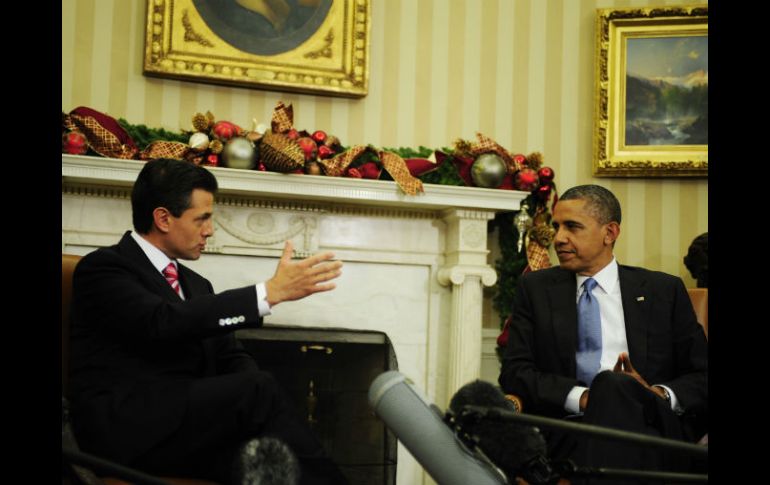 México | El presidente electo destaca que su objetivo es la creación de empleos Peña busca darle énfasis económico a la relación con EU Destaca que como Obama, su gran objetivo es la creación de empleos Por: EFE 27 de noviembre de 2012 - 16:17 hs WASHINGTON DC, ESTADOS UNIDOS (27/NOV/2012).- El presidente de Estados Unidos, Barack Obama, y el presidente electo de México, el priista Enrique Peña Nieto, se comprometieron hoy a estrechar tanto la integración económica de ambos países como la cooperación bilateral para reducir la violencia y fortalecer la frontera común. Al inicio de un encuentro privado en el Despacho Oval de la Casa Blanca, Obama felicitó a Peña Nieto por su triunfo en julio pasado, y afirmó que México es, hoy por hoy, algo más que un socio importante de Estados Unidos. "México se ha convertido no simplemente en un importante socio bilateral sino que hoy es un líder multilateral, multinacional, muy importante en una amplia gama de asuntos, desde la energía hasta el cambio climático, y esperamos trabajar con México no sólo en asuntos regionales, sino también globales", afirmó Obama. El mandatario estadounidense reiteró la voluntad de su Administración de fortalecer los vínculos económicos y comerciales con México, así como la coordinación bilateral en la frontera común y en la lucha contra el narcotráfico. Obama destacó las "increíbles contribuciones" de los mexicanos a la economía, sociedad y vida política de Estados Unidos, al tiempo que reconoció el interés de México en que Estados Unidos logre una reforma migratoria integral. Esa reforma migratoria, estancada en el Congreso desde 2010 debido a la falta de consenso, permitiría regularizar a los inmigrantes indocumentados en Estados Unidos, buena parte de ellos procedente de México. Tras ganar la reelección el pasado 6 de noviembre, Obama ha reiterado que comenzará a impulsar la reforma migratoria después de su toma de posesión para un segundo mandato en enero próximo. Como ejemplo de la prioridad que tiene México para Estados Unidos, Obama recordó que el vicepresidente Joseph Biden encabezará la delegación a la investidura de Peña Nieto el próximo sábado, algo que, según el mandatario, sólo se reserva a "países que figuran al frente de la lista" para Washington. Por su parte, Peña Nieto, del Partido Revolucionario Institucional (PRI), le propuso a Obama un "replanteamiento" de la relación bilateral, de manera que se haga énfasis en el intercambio comercial y económico. Peña Nieto destacó que, con un pasado como legisladores locales, tanto él como Obama tienen "una gran sensibilidad sobre los problemas que enfrentan nuestros pueblos", como la generación de empleos ante la ralentización global. "Considero conveniente hacer un replanteamiento de nuestra mayor integración para lograr en Norteamérica una región más competitiva y con capacidad de generar un mayor número de empleos, fortalecer la integración de Norteamérica y además abrir espacios de mayor relación con la región de Asia", dijo Peña Nieto. En ese sentido, subrayó el interés de su entrante Gobierno por acelerar el Acuerdo de Asociación Transpacífica (TPP, por su sigla en inglés), en cuyas negociaciones México ha sido invitado a participar. Si bien desde su campaña electoral Peña Nieto ha buscado reorientar la relación bilateral hacia el área económica, hoy reconoció, no obstante, que México sigue afrontando retos en materia de seguridad. "Mi Gobierno tiene un gran compromiso con los mexicanos para lograr la reducción de la violencia, por lo que estaré proponiendo una nueva estrategia que nos permita lograr ese objetivo", dijo. Agregó que se propone aumentar la cooperación con Estados Unidos para "construir fronteras modernas, seguras, que nos permitan estar mejor integrados en América del Norte". Respecto a los esfuerzos de Obama de impulsar la reforma migratoria, Peña Nieto aseguró que, más que "venir a demandar esa reforma", quiere que México tenga un papel en ese proceso. "Queremos ser o contribuir desde nuestro espacio a que se logre, a ver cómo podemos apoyar, respaldar tan importante iniciativa" para regularizar a la población indocumentada, y "eventualmente lograr un acuerdo de mayor movilidad de personas entre Estados Unidos y México, subrayó. La visita de Peña Nieto se produce en unos momentos en que México ha reducido la emigración ilegal hacia Estados Unidos y la violencia derivada del narcotráfico, además de que en 2011, la economía mexicana creció con mayor rapidez que la de Brasil. Según la revista The Economist, de mantenerse la tendencia actual para 2018, Estados Unidos habrá importado más de México que de cualquier otro país, por lo que los supermercados y tiendas estadounidenses tendrán, cada vez más, productos con la etiqueta "hecho en México". Peña Nieto sostuvo reuniones privadas con la secretaria de Seguridad Nacional, Janet Napolitano, y con la líder de la minoría demócrata de la Cámara de Representantes, Nancy Pelosi. También se reunirá con el líder de la mayoría demócrata en el Senado, Harry Reid, y hará declaraciones a la prensa antes de viajar a Canadá, donde mañana se reunirá con el primer ministro canadiense, Stephen Harper. Temas Política Estados Unidos Enrique Peña Nieto Barack Obama Lee También ¿Recibiste correo de rechazo de FIFA? Aquí te decimos cuándo es la siguiente venta Trump se reunirá con Putin para negociar fin de la guerra en Ucrania Trump construirá un arco del triunfo en Washington Ascienden a 70 los muertos por las lluvias de los últimos días Recibe las últimas noticias en tu e-mail Todo lo que necesitas saber para comenzar tu día Registrarse implica aceptar los Términos y Condiciones