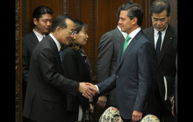 México | Les reconoce por dedicarse a fortalecer las relaciones entre los países Peña impone condecoración del Águila Azteca a tres japoneses Les reconoce por dedicarse a fortalecer las relaciones entre los países Por: NTX 9 de abril de 2013 - 21:13 hs Peña se reúne con miembros de la Cámara Alta de Japón. NTX / TOKIO, JAPÓN (09/ABR/2013).- El Presidente Enrique Peña Nieto impuso la condecoración de la orden mexicana del Águila Azteca a tres japoneses, quienes se han distinguido por sus aportaciones a México. Los galardonados son Sadako Ogata, Hirofumi Nakasome y Takashi Yamanushi, a quienes el Mandatario mexicano felicitó por su dedicación para fortalecer las relaciones entre ambos países y se dijo honrado por reconocer sus trayectorias. El jefe del Ejecutivo federal destacó la labor de Sadako Ogata, quien trabajó en favor de los derechos guatemaltecos cuando se desempeñó como Alta Comisionada de los Refugiados entre 1991 y 2000. De igual forma, reconoció a Hirofumi Nakasome, quien fungió como presidente de la Federación Parlamentaria Japón-México. El presidente Peña también entregó la presea a Takashi Yamanushi, quien ha tenido una exitosa trayectoria al frente de la automotriz Mazda y es testigo del buen clima de negocios que ofrece México a los inversionistas. "Usted mantuvo a México en el centro de su estrategia internacional y hoy el tiempo le ha dado la razón", expresó el Peña Nieto en su último día de gira en Japón. Por último, el mandatario mexicano señaló que los tres galardonados son vivo ejemplo de la entrañable amistad que une a las dos naciones desde hace cuatro siglos. En su oportunidad, Sadako Ogata reconoció el trabajo de México con los ex refugiados de Guatemala en Chiapas al darles cobijo a mediados del siglo pasado. Mientras, el presidente de la Federación Parlamentaria Japón-México aludió a la próxima conmemoración del 400 aniversario de la embarcación con tripulantes japoneses que llegó a costas mexicanas, y se pronunció a favor de fortalecer las relaciones amistosas entre las dos naciones. Temas Gobierno de México Enrique Peña Nieto Japón Lee También Balean a abogado frente a Ciudad Judicial en CDMX Este será el costo del Gas Bienestar en la semana del 13 al 18 de octubre Autos con estas placas deben realizar la Verificación Vehicular antes del 31 de octubre Viral: vendedor de carnitas es detenido por matar a extranjero a tubazos en la CDMX Recibe las últimas noticias en tu e-mail Todo lo que necesitas saber para comenzar tu día Registrarse implica aceptar los Términos y Condiciones
