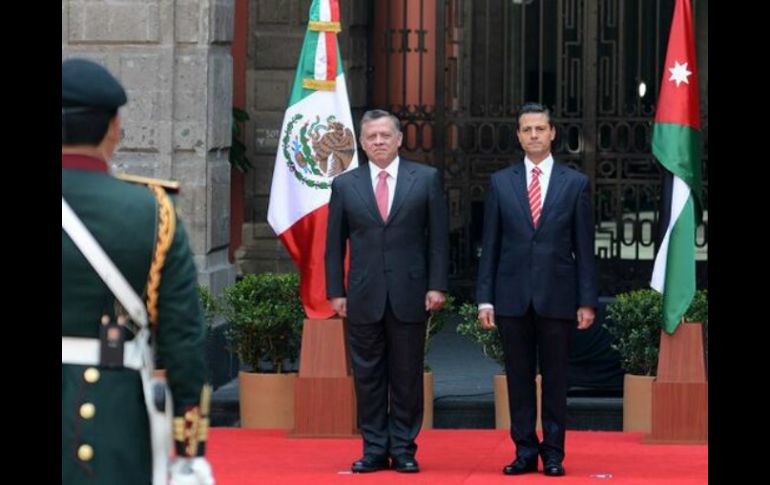 México | Se prevé que luego de la bienvenida firmen un acuerdo comercial Peña recibe al rey de Jordania en Palacio Nacional Se prevé que luego de la bienvenida firmen un acuerdo comercial Por: SUN 6 de febrero de 2014 - 12:24 hs CIUDAD DE MÉXICO (06/FEB/2014).- El Presidente Enrique Peña Nieto recibió este jueves en el patio central de Palacio Nacional al rey Abdhulla II de Jordania, quien realiza un visita en la que se prevé que ambos países firmen los "términos de referencia para la negociación de un acuerdo de libre comercio". La ceremonia de bienvenida constó de la entonación de los himnos nacionales de México y Jordania para posteriormente realizaron la presentación de comitivas. La delegación de México será encabezada por el canciller José Antonio Meade y los secretarios de Economía y Turismo, Ildefonso Guajardo y Claudia Ruiz Masieum, respectivamente. Al concluir, el presidente de México y el rey de Jordania pasaron revista a la guardia de Honor de la Palacio Nacional integrada por elementos del Estado Mayor Presidencial para después mostrar al visitante el mural de Diego Rivera. Durante la bienvenida, el Mandatario mexicano anunció que existe el interés mutuo de concretar un Tratado de Libre Comercio y destacó que ese acuerdo sería el primero que Jordania pactaría con un país en América Latina. Por su parte, el Rey Abdullah se pronunció por lograr paz en Medio Oriente, específicamente en el conflicto Israel-Palestina y en la crisis de Siria. "Todos queremos una solución política a la crisis que se está dando en Siria", dijo el Rey de Jordania, quien destacó el liderazgo de México en el mundo. Posteriormente tendrán una reunión fijada en el despacho presidencial. A las 14:00 horas se prevé que los dignatarios realicen una declaración conjunta en el patio de honor y atestigüen la firma de una serie de acuerdos de entendimiento en materia de turismo e intercambio comercial. Para finalizar la jornada, el Presidente Peña Nieto ofrecerá en el salón Rojo de Palacio Nacional una comida en honor del Rey de Jordania. Temas Gobierno de México Enrique Peña Nieto Relaciones Exteriores Jordania Lee También Astros de Jalisco desafía al vigente campeón en la final de zona de la LNBP Buen Fin 2025: Consejos para hacer compras inteligentes ¿Quién es la diputada que se opone al impuesto de videojuegos violentos? Reportan apertura de 335 caminos tras afectaciones por lluvias en cinco estados Recibe las últimas noticias en tu e-mail Todo lo que necesitas saber para comenzar tu día Registrarse implica aceptar los Términos y Condiciones