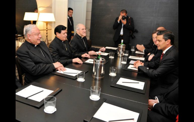 México | El Mandatario tiene un encuentro privado con los cuatro cardenales mexicanos Peña se reúne con cardenales mexicanos en Roma El Presidente mexicano tiene un encuentro privado con José Francisco Robles Ortega, Norberto Rivera Carrera, Juan Sandoval Íñiguez y Javier Lozano Barragán Por: NTX 18 de marzo de 2013 - 16:09 hs ROMA, ITALIA (18/MAR/2013).- Previo a su participación en la ceremonia de inauguración del pontificado del Papa Francisco, el Presidente Enrique Peña Nieto sostuvo un encuentro privado con los cuatro cardenales mexicanos que se encuentran en esta ciudad luego de la designación del sumo pontífice. En el encuentro, los cardenales José Francisco Robles Ortega, Norberto Rivera Carrera, Juan Sandoval Íñiguez y Javier Lozano Barragán, externaron al Mandatario mexicano la importancia de fortalecer la educación en el país, a través de los valores cívicos. Además abordaron temas como el significado del cónclave para elegir al nuevo papa, y los prelados externaron su beneplácito porque el Santo Padre sea latinoamericano y por el gran carisma que tiene con los feligreses de todo el mundo. Asimismo, destacaron el interés que el Papa Francisco tiene en tópicos globales como la paz, el combate a la pobreza, y la ecología, según informó Presidencia de la República. Temas Gobierno de México Enrique Peña Nieto Norberto Rivera Italia Juan Sandoval Íñiguez Francisco Robles Ortega Lee También Detienen en Tabasco a menor vinculado con grupo delictivo Hoy No Circula lunes 13 de octubre 2025: Autos que descansan en CDMX y Edomex Clara Brugada rinde su Primer Informe de Gobierno Morelos reporta siete muertos tras lluvias de las últimas horas Recibe las últimas noticias en tu e-mail Todo lo que necesitas saber para comenzar tu día Registrarse implica aceptar los Términos y Condiciones