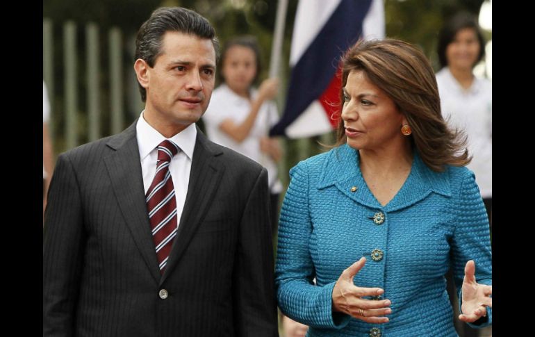 México | Se encuentran reunidos en el Museo de Arte Costarricense Peña sostiene reunión privada con Chinchilla Se tiene previsto que al término de la reunión, ambos presidentes ofrezcan un mensaje a los medios Por: NTX 19 de febrero de 2013 - 17:21 hs SAN JOSÉ, COSTA RICA (19/FEB/2013).- El Presidente Enrique Peña Nieto y su homóloga de Costa Rica, Laura Chinchilla sostienen un encuentro privado en las instalaciones del Museo de Arte Costarricense. Luego de la ceremonia oficial de bienvenida, en donde se entonaron los himnos nacionales de ambos países y se presentaron sus respectivas comitivas, los mandatarios iniciaron su encuentro. En esta su primera visita a este país, el Mandatario mexicano abordará diversos temas en busca de fortalecer los vínculos económicos y culturales entre ambos países. En el encuentro privado participan por México ,el secretario de Relaciones Exteriores, José Antonio Meade; Vanessa Rubio Márquez, subsecretaria para América Latina y el Caribe, así como el embajador de México en ese país, Armando Álvarez Reina. Mientras que por Costa Rica participan el ministro de Relaciones Exteriores, José Enrique Castillo y la embajadora de Costa Rica en México, Gabriela Jiménez Cruz. Se tiene previsto que al término de la reunión, ambos presidentes ofrezcan un mensaje a los medios de comunicación. Temas Gobierno de México Enrique Peña Nieto Costa Rica Laura Chinchilla Recibe las últimas noticias en tu e-mail Todo lo que necesitas saber para comenzar tu día Registrarse implica aceptar los Términos y Condiciones