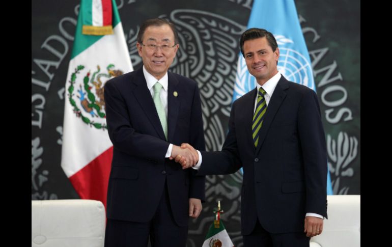 México | El secretario de la ONU destaca el liderazgo de México como promotor del desarme Peña y Ban Ki-moon abordan temas de seguridad El secretario de la ONU destaca el liderazgo de México como promotor del desarme Por: SUN 15 de abril de 2014 - 20:17 hs Ban Ki-moon (i) es recibido por el Presidente Enrique Peña Nieto (d) en la residencia oficial de Los Pinos. NTX / CIUDAD DE MÉXICO (15/ABR/2014).- El Presidente Enrique Peña Nieto sostuvo, este martes, una reunión de trabajo en privado con el secretario general de la Organización de las Naciones Unidas (ONU), Ban Ki-moon, en la residencia oficial de Los Pinos. En un comunicado, la casa presidencial informó que el encuentro tuvo como objetivo "desarrollar iniciativas de cooperación en los principales temas de la agenda multilateral, como el desarrollo, los derechos humanos y el mantenimiento de la paz y la seguridad". En la reunión, el secretario general destacó el liderazgo de México en la ONU, el cual ha sido reconocido internacionalmente como promotor del desarme, de la solución pacífica de controversias y la prevención de conflictos, de mejores políticas de desarrollo enfocadas en las necesidades de las personas y de la promoción y protección de los derechos humanos. "Ban Ki-moon subrayó en particular el éxito de nuestro país en la organización de conferencias internacionales clave para lograr avances en la agenda multilateral, como la de Alto Nivel de la Alianza Global para la Cooperación Eficaz al Desarrollo, inaugurada hoy, y la de Nayarit sobre el Impacto Humanitario de las Armas Nucleares, que se llevó a cabo en febrero de 2014", destacó Los Pinos. Agregó que el secretario general de la ONU manifestó su respaldo a México para ser sede de la Primera Conferencia de los Estados Partes del Tratado sobre el Comercio de Armas, a celebrarse en 2015, y ofreció el apoyo de las Naciones Unidas en la organización. A la reunión acudieron el secretario de Relaciones Exteriores, José Antonio Meade; el subsecretario para Asuntos Multilaterales y Derechos Humanos, embajador Juan Manuel Gómez Robledo; la secretaria ejecutiva de la Comisión Económica para América Latina y el Caribe (CEPAL), Alicia Bárcena, y la coordinadora residente del Programa de Naciones Unidas para el Desarrollo (PNUD) en nuestro país, Marcia de Castro. Posteriormente, el Presidente ofreció una comida al secretario general de la ONU, a la que se sumaron los titulares de los organismos internacionales que participaron en la primera reunión de Alto Nivel para la Cooperación Eficaz al Desarrollo. En la comida estuvieron el secretario general de la Organización para la Cooperación y el Desarrollo Económicos ( OCDE), José Ángel Gurría; el presidente del Banco Interamericano de Desarrollo (BID), Luis Alberto Moreno; el presidente del Banco Europeo para la Reconstrucción y Desarrollo, Chakrabarti Sumantra; la administradora del PNUD, Helen Clark; la directora de la Organización Mundial de la Salud, Margaret Chan; la Ministra de Asuntos Exteriores de Australia, Julie Bishop; la ministra de Finanzas de la República de Nigeria, Ngozi Okonjo-Iweala; así como el ministro de Asuntos Exteriores de la República de Corea, Yun Byung-Se. Por parte de México acompañaron al Presidente de la República los secretarios de Relaciones Exteriores, José Antonio Meade; de Salud, Mercedes Juan; de Medio Ambiente y Recursos Naturales, Juan José Guerra Abud; el Jefe de la Oficina de la Presidencia de la República, Aurelio Nuño; y los subsecretarios de Relaciones Exteriores y de Asuntos Multilaterales y Derechos Humanos, Carlos de Icaza y Juan Manuel Gómez Robledo, respectivamente, así como el representante permanente de México ante la ONU, Jorge Montaño. En la comida, el presidente Peña Nieto agradeció a Ban Ki-moon su visita y reiteró que el activismo internacional de México corresponde al compromiso de ser una nación con mayor presencia global; refirió que nuestro país ha desplegado una diplomacia activa en todos los frentes de la escena internacional. Temas Gobierno de México Enrique Peña Nieto ONU Ban Ki-moon Control de armas Recibe las últimas noticias en tu e-mail Todo lo que necesitas saber para comenzar tu día Registrarse implica aceptar los Términos y Condiciones