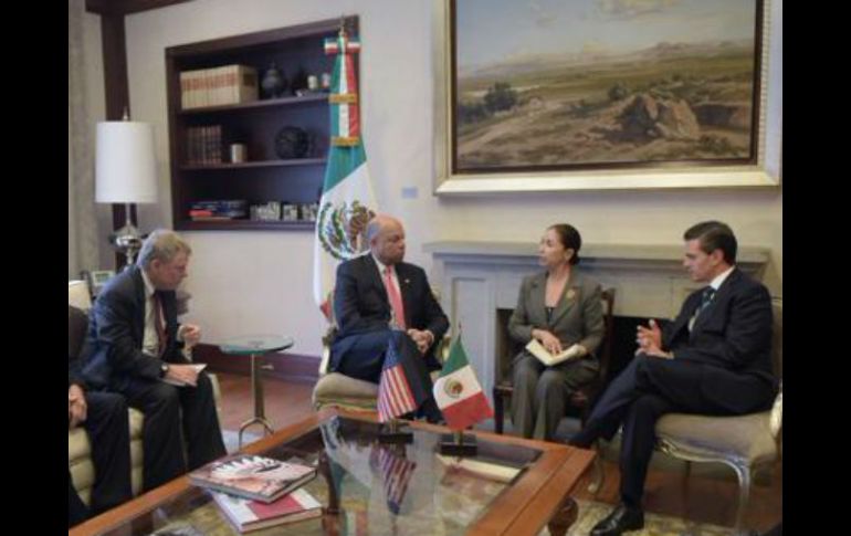 México | El Mandatario reconoce al gobierno estadounidense por el anuncio de las medidas Peña y Johnson analizan seguridad fronteriza y migración El Mandatario reconoce al gobierno estadounidense por el anuncio de las medidas migratorias Por: SUN 16 de diciembre de 2014 - 16:47 hs El Presidente informa que trabajará de manera coordinada con su contraparte para lograr su mayor alcance. TWITTER / @PresidenciaMX CIUDAD DE MÉXICO (16/DIC/2014).- Durante una reunión privada realizada la tarde de este martes, el Presidente Enrique Peña Nieto y el secretario de Seguridad Interna de Estados Unidos, Jeh Johnson, analizaron el trabajo entre México y la Unión Americana en torno a la seguridad fronteriza, migración y la cooperación conjunta a favor de Centroamérica. El Presidente de la República recibió al filo de las 14:00 horas, en la residencia oficial de Los Pinos, al funcionario estadounidense con quien dialogó durante más de una hora con el objetivo, entre otros temas, de impulsar el desarrollo económico y la competitividad en la región fronteriza. Peña y Johnson hablaron sobre el fortalecimiento de iniciativas bilaterales en las que México y Estados Unidos colaboran para reducir los incidentes de violencia en la zona fronteriza y vigilar el respeto los derechos humanos de los migrantes. Coincidieron en incrementar las acciones de cooperación que emprenden ambos países en Centroamérica, particularmente en apoyo del Plan para la Prosperidad del Triángulo del Norte, con el fin de generar mejores condiciones de vida y oportunidades en dicha región. El Presidente de México reconoció al gobierno de Estados Unidos por el reciente anuncio de medidas administrativas en materia migratoria realizado por el presidente Barack Obama, con el que se podría beneficiar un gran número de mexicanos que radican en ese país. Peña Nieto, de acuerdo con un comunicado de Los Pinos, informó que el Gobierno mexicano trabajará de manera coordinada con su contraparte estadounidense a fin de lograr que estas medidas en materia migratoria tengan el mayor alcance posible. Para ello, el Mandatario mexicano señaló que la red de Consulados de México en ese país se prepara para prestar los servicios y asistencia consular requeridos. En la reunión participaron el secretario de Relaciones Exteriores, José Antonio Meade Kuribreña; el subsecretario de Relaciones Exteriores para América del Norte, Sergio M. Alcocer; el embajador de México en Estados Unidos de América, Eduardo Medina Mora, y el jefe de la Oficina de la Presidencia, Aurelio Nuño. A su vez, el secretario de Seguridad Interna de Estados Unidos estuvo acompañado por el asesor de Seguridad Nacional, Rand Beers; el subsecretario para Asuntos Internacionales y jefe Diplomático del Departamento de Seguridad Interna, Alan Bersin, y el embajador de ese país en México, Anthony Wayne. Previo al encuentro, el secretario Jeh Johnson sostuvo reuniones de trabajo con el secretario de Relaciones Exteriores, José Antonio Meade Kuribreña, y con el secretario de Gobernación, Miguel Ángel Osorio Chong. Temas Gobierno de México Estados Unidos Enrique Peña Nieto Migración Lee También Clima en Ciudad de México hoy: el pronóstico para el miércoles 22 de octubre de 2025 Dónde comprar más barata la flor de cempasúchil en CDMX para el Día de Muertos 2025 Plaga Osbornellus salsus: ¿Qué es y dónde fue identificada? Desfile de Catrinas 2025 CDMX: Fecha, ruta y hora del recorrido del Día de Muertos Recibe las últimas noticias en tu e-mail Todo lo que necesitas saber para comenzar tu día Registrarse implica aceptar los Términos y Condiciones