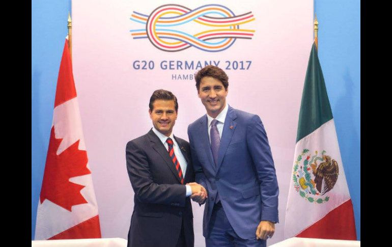 HAMBURGO, ALEMANIA (08/JUL/2017).- El Presidente Enrique Peña Nieto y el primer ministro de Canadá, Justin Trudeau coincidieron en continuar trabajando para lograr una buena alianza en la renegociación del Acuerdo de Libre Comercio junto con los Estados Unidos.Durante el segundo y último día de actividades de este encuentro que convoca a los jefes de Estado de las 20 naciones más poderosas del mundo, el Mandatario mexicano afirmó que los dos países están "enfilados a lograr un acuerdo muy promisorio y en beneficio de nuestras sociedades".En el encuentro, subrayó que la renegociación del Tratado de Libre Comercio de América del Norte (TLCAN) debe garantizar el libre comercio y el libre flujo de inversiones entre los tres países.En esta reunión, conversaron sobre temas de interés compartido, en el marco de la Cumbre de Líderes del G-20, y el Presidente de México destacó que se ha logrado dar un nuevo impulso a la relación bilateral en distintos aspectos.Expuso que ambas naciones caminan de la mano y trabajan juntas, al tiempo que agradeció la hospitalidad del premier canadiense durante la visita de Estado que tuvo a Canadá, y en reciprocidad le invitó a visitar México en fecha próxima.A su vez, Justin Trudeau expresó que tiene con el Presidente mexicano una excelente relación, en la que se alinean los valores, oportunidades, la manera en la que vemos al TLCAN y el rol positivo que queremos jugar, no sólo en Norteamérica, sino en todo el mundo.Este día, Ejecutivo Federal también tuvo encuentros bilaterales con el presidente del gobierno italiano, Paolo Gentiloni; el Primer Ministro de India, Narendra Modi, y con el presidente del gobierno Español, Mariano Rajoy.