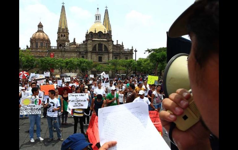México | Unas 300 personas se manifestaron en el Centro de Guadalajara Pequeño contingente marcha en contra de Peña Nieto Los participantes difundieron inconformidades hacia el candidato del PRI a la Presidencia de México y criticaron cobertura mediática inclinada al partido tricolor Por: EL INFORMADOR 24 de junio de 2012 - 16:34 hs GUADALAJARA, JALISCO (24/JUN/2012) - "Ni un voto al PRI", gritaba al unísono un contingente de alrededor de 300 personas que se reunió en la Plaza Liberación, luego de marchar sobre la avenida 16 de septiembre, para dar lectura a una serie de inconformidades que ellos, como miembros de un movimiento apartidista y ciudadano, profesan contra el candidato presidenciable del Partido Revolucionario Institucional (PRI), Enrique Peña Nieto. Sin contar con un nombre que denomine al grupo, cerca de 130 jóvenes y adultos se reunieron al mediodía en la Glorieta de la Normal, ubicada en el cruce de avenida prolongación Alcalde con Ávila Camacho, para dar inicio a una marcha de simpatizantes con la ideología de los movimientos anti EPN y #YoSoy132. "No vamos a representar a ningún candidato, por más que cualquiera de nosotros tengamos alguna filiación o tendencia", indicó uno de los participantes mientras esperaban a que otros se sumaran para dar inicio. Al marcar las 13:00 horas, el conjunto empezó a avanzar con apoyo de oficiales de Vialidad, alzando la voz al grito "fuera Peña Nieto", mientras repartían volantes informativos sobre las irregularidades que se registraron en el Estado de México durante la gubernatura del candidato: "Queremos hacer el último golpe informativo hacia la sociedad para generar conciencia y que analicen bien su voto. No queremos que regrese el autoritarismo del PRI", añadían. Comenzaron a reunir más participantes al llegar a la calle Gabriela Mistral, mientras alentaban con la frase "el pueblo consciente se une al contingente". Más adelante, se detuvieron frente al Palacio Federal y el Ayuntamiento para demostrar su rechazo ante las formas de gobierno. Al llegar a su destino, la Plaza Liberación, se encontraron con propagandistas a favor de Ramiro Hernández, candidato a la presidencia municipal de Guadalajara, que realizaban una rifa de varias fotografías antiguas que retratan la capital jalisciense. Para participar en el sorteo se debía llenar una tarjeta con nombre, domicilio, teléfono y correo electrónico. A pesar de contar con ideales políticos opuestos, el encuentro no registró actos de violencia. La protesta esclarecía la intención de la marcha, indicando su inconformidad con la cobertura de los medios de comunicación inclinada a favor del partido tricolor, así como la manipulación de información y estadísticas. También exteriorizaron estar en contra "del regreso de viejas prácticas de represión, autoritarismo, que ejerció en el Estado de México. Para nosotros Peña Nieto es un candidato vacío y manipulado", según la voz de uno de los representantes que prefirió no compartir su nombre. "Estamos en contra de Enrique Peña Nieto, no como persona, sino como candidato, siendo una figura mediante la cual se pretenda tomar el control de nuestro país y nuestras voluntades. Estamos en contra de los intereses y los personajes que rodean su candidatura", declararon mientras curiosos y partidarios del PRI, que se encontraban en la explanada, escuchaban mientras paseaban por el lugar. EL INFORMADOR / RUBÉN GIL Temas Manifestaciones en Jalisco Enrique Peña Nieto Elecciones México 2012 Recibe las últimas noticias en tu e-mail Todo lo que necesitas saber para comenzar tu día Registrarse implica aceptar los Términos y Condiciones