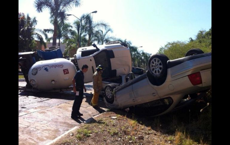 México | Causa daños a seis unidades luego de que viajara a exceso de velocidad Pipa de gas vuelca en Guerrero y causa dos lesionados Causa daños a seis unidades luego de que viajara a exceso de velocidad Por: SUN 20 de enero de 2014 - 20:16 hs El área es acordonada por personal de Bomberos quienes rociaron con mangueras de agua la pipa para evitar una explosión. SUN / ZIHUATANEJO, GUERRERO (20/ENE/2014).- Una pipa de gas LP de la empresa Global Gas que perdió el control cuando circulaba sobre el bulevar de Ixtapa volcó y cayó encima de otro vehículo compacto dejando un saldo de dos personas lesionadas, quienes fueron trasladas a un hospital del municipio. De acuerdo al reporte de la Secretaría de Seguridad Pública del estado, el accidente de se registró alrededor 13:50 horas cuando la pipa con placas de Guerrero a exceso de velocidad perdió el control y volcó causando daños a seis unidades. En el accidente, un automóvil modelo Passat color gris con placas del Distrito Federal volcó quedando con las llantas hacia arriba, mientras que debajo de la pipa de gas quedó una camioneta de la marca Ford tipo Escape color gris con placas del estado de Guerrero. Más adelante, seis vehículos compactos resultaron con daños menores. Durante el accidente, paramédicos de la Cruz Roja Mexicana así como taxistas auxiliaron al chofer de la pipa y su ayudante que fueron llevados al hospital del IMSS para su atención médica. El área fue acordonada por el personal de Protección Civil y Bomberos municipal, quienes cerraron la circulación vehicular por espacio de dos horas, mientras que vulcanos rociaron con mangueras de agua la pipa para evitar una explosión. Las unidades fueron remolcadas y trasladadas al corralón de Tránsito Municipal para deslindar responsabilidades. Por su parte, el conductor de la pipa de gas fue resguardado en el Seguro Social para garantizar el pago de los daños materiales. Temas Estados Accidentes México Guerrero Lee También Helicóptero se desploma en Huntington Beach, California; reportan cinco heridos Tres personas resultan lesionadas tras explosión de camión en carretera México-Puebla Reformas a Ley de Amparo no limita derechos ciudadanos Festival del Pan de Muerto en CDMX: Fechas, horarios y actividades Recibe las últimas noticias en tu e-mail Todo lo que necesitas saber para comenzar tu día Registrarse implica aceptar los Términos y Condiciones