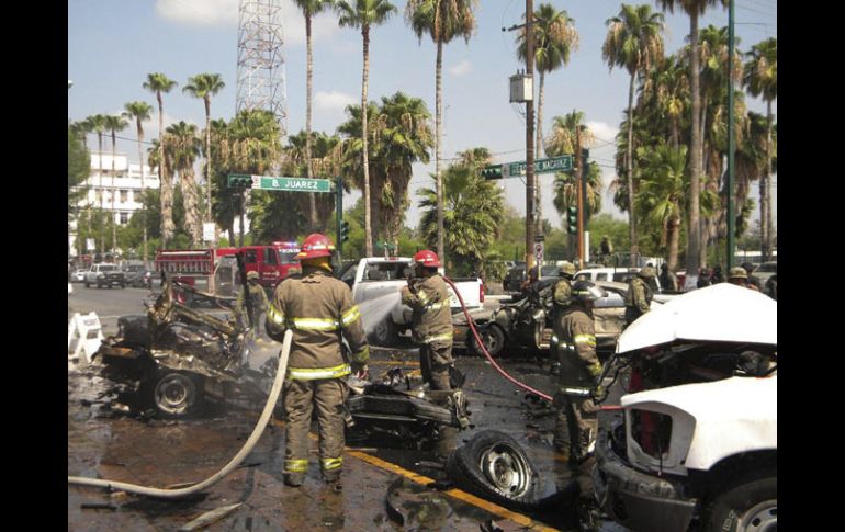 México | El secretario de Gobernación dio el anuncio a través de su cuenta de Twitter Poiré anuncia refuerzo de federales en Nuevo Laredo Las medidas son anunciadas luego de que este viernes por la mañana un coche-bomba explotara a unos metros de la presidencia municipal de Nuevo Laredo, Tamaulipas Por: SUN 30 de junio de 2012 - 13:56 hs Los bomberos extinguen el fuego causado por la explosión del coche-bomba. ARCHIVO / CIUDAD DE MÉXICO (30/JUN/2012).- El secretario de Gobernación, Alejandro Poiré, anunció a través de su cuenta oficial de Twitter que se reforzará la presencia de la policía federal en Nuevo Laredo para que los tamaulipecos acuda a votar. Las medidas son anunciadas luego de que este viernes por la mañana un coche-bomba explotara a unos metros de la presidencia municipal de Nuevo Laredo, Tamaulipas, y de una base del Ejército. La explosión dejó un saldo de siete civiles lesionados, entre ellos dos mujeres, además de 11 vehículos completamente destrozados por la onda expansiva y daños en la estructura del edificio de gobierno. Alejandro Poiré publicó: "¡Buen día! Se refuerza presencia federal en Nuevo Laredo. Habrá condiciones de seguridad fortalecidas para que la gente salga a votar." Temas Estados Tamaulipas Explosiones Lee También Así se prevé que avance el desarrollo de "Sonia" en México Visa laser: ¿Qué vigencia tiene y cuáles son sus limitaciones? ¿Qué viene en el clima para México en los próximos días? Trump ve oportunidad de firmar la paz con Irán, pero "primero Rusia" Recibe las últimas noticias en tu e-mail Todo lo que necesitas saber para comenzar tu día Registrarse implica aceptar los Términos y Condiciones
