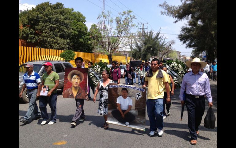 México | Estudiantes de la Normal de Ayotzinapa se manifiestan, acompañdos por la CETEG Policía Estatal vigila marcha de normalistas en Guerrero La manifestación es fuertemente resguardada por al menos cuatro autobuses con policías estatales y equipo antimotines, además de 15 patrullas Por: SUN 26 de abril de 2013 - 13:22 hs CHILPANCINGO, GUERRERO (26/ABR/2013).- Estudiantes de la Normal de Ayotzinapa, acompañados por los padres de los dos normalistas fallecidos el 11 de diciembre de 2011, iniciaron una marcha del zócalo de esta capital al punto conocido como Parador del Marqués. En ese lugar, durante el desalojo de la Autopista del Sol por parte de la Policía Federal y del estado, murieron por heridas de arma de fuego Jorge Alexis Herrera Pino y Gabriel Echeverría de Jesús. La marcha es fuertemente resguardada por al menos cuatro autobuses con policías estatales y equipo antimotines, además de 15 patrullas con uniformados. Jorge Herrera, padre de uno de los normalistas fallecidos, comentó que debido a que las autoridades estatales han quedado rebasadas, acudirán a instancias internacionales como la Corte Interamericana de Derechos Humanos (CIDH) para exigir que se esclarezca este asesinato. Hace tres días, un juez local dictó la libertad condicional a dos policías ministeriales presuntos autores materiales de los hechos. Con la Banda de Guerra de Ayotzinapa y flores blancas y girasoles, los normalistas exigen justicia. También son acompañados por maestros integrantes de la Coordinadora Estatal de Trabajadores de la Educación de Guerrero (CETEG). Temas Estados Guerrero Conflicto Magisterial Lee También Lluvia y frío para estas zonas de México HOY viernes Devolverán "hasta el último cuerpo" de los rehenes en Gaza: Netanyahu Aún lejos de Jalisco, "Sonia" baja potencia para aparecer El “malabarista” de la Casa Blanca Recibe las últimas noticias en tu e-mail Todo lo que necesitas saber para comenzar tu día Registrarse implica aceptar los Términos y Condiciones