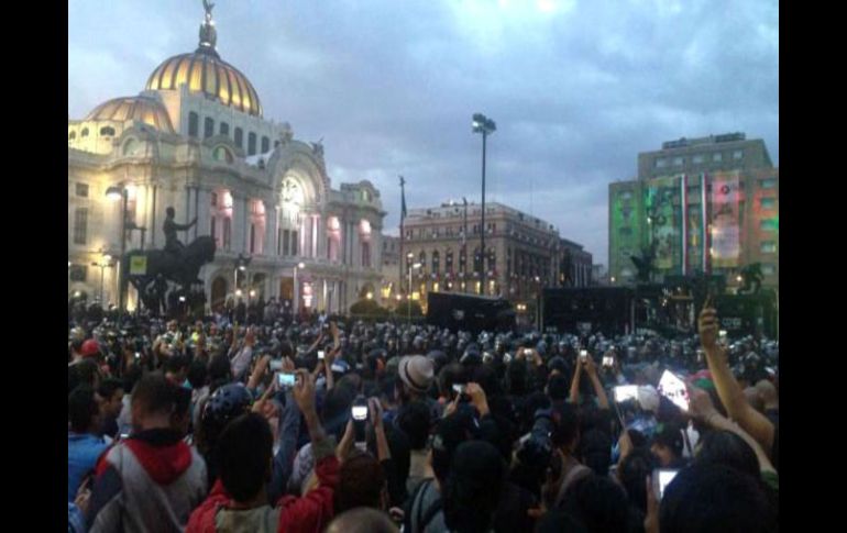 CIUDAD DE MÉXICO (15/SEP/2016).- La marcha #RenunciaYa fue contenida frente al Palacio de Bellas Artes y pese a que hubo empujones y gritos, los policías capitalinos detuvieron el contingente.Los asistentes a la marcha #RenunciaYa en contra del Presidente Enrique Peña Nieto, gritaron por tratar de llegar al Zócalo capitalino, sin embargo, fueron contenidos.Los ciudadanos piden que no haya violencia y gritan: "infiltrados" para que no haya violencia.De manera paralela, la policía capitalina ya instaló dos camiones antimotines para evitar el paso de los manifestantes.