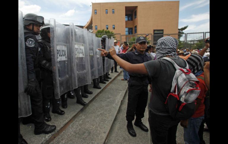 México | La CETEG rechaza el desalojo del plantón magisterial en apoyo a los normalistas Policías antimotines y maestros forcejean en Chilpancingo Miembros de la CETEG rechazan el desalojo del plantón magisterial en apoyo a los normalistas Por: SUN 18 de febrero de 2015 - 19:25 hs Al menos dos policías fueron heridos en la cabeza y dos maestros también resultaron con lesiones leves. SUN / ARCHIVO CHILPANCINGO, GUERRERO (18/FEB/2015).- Después de las 18:30 horas de este miércoles, policías antimotines forcejearon con maestros de la Coordinadora Estatal de Trabajadores de la Educación (CETEG) y con normalistas, quienes con bombas molotov y piedras rechazaron un presunto desalojo del plantón magisterial instalado en la plaza cívica de Chilpancingo en apoyo a los padres de familia de los 43 normalistas desaparecidos. Al lugar continuaban llegando la tarde noche de este miércoles más policías municipales y estatales en ambas direcciones de la avenida Ignacio Ramírez por donde, informaron los profesores, tienen planeado llegar para proceder al desalojo del plantón. Al menos dos policías fueron heridos en la cabeza y dos maestros también resultaron con lesiones leves. Los maestros informaron que hay cinco maestros detenidos. Por otra parte, se dio a conocer que hay dos trabajadores de una empresa refresquera retenidas en el campamento del magisterio. Los manifestantes dijeron que no los liberarán hasta que dejen libres a tres normalistas retenidos por la mañana y a los cinco maestros detenidos tras el zafarrancho. Los policías antimotines estatales llegaron al campamento para rescatar a los empleados de la refresquera, sin embargo, no lo han logrado. Actualmente los plantonistas están rodeados por elementos antimotines. Se prevé que ocurra el desalojo de las plazas y oficinas de gobierno tomadas por la CETEG. Minervino Morán Hernández, ex dirigente de la CETEG, dio a conocer que rechazan la posición del actual líder del magisterio, Ramos Reyes Guerrero, quien acordó con el gobierno de Guerrero entregar todas las oficinas de gobierno tomadas y hacer sus manifestaciones de una manera más pacífica. Por el contrario, señaló, intensificarán las acciones y no abandonarán los espacios tomados. Temas Estados Guerrero Manifestaciones en México Caso Ayotzinapa Lee También SMN advierte lluvias y bajas temperaturas en México esta semana Morelos reporta siete muertos tras lluvias de las últimas horas Liverpool: ¡Laptops en menos de 5 mil pesos que no te puedes perder! Zague aseguró que "no existe calidad" en el futbol mexicano Recibe las últimas noticias en tu e-mail Todo lo que necesitas saber para comenzar tu día Registrarse implica aceptar los Términos y Condiciones