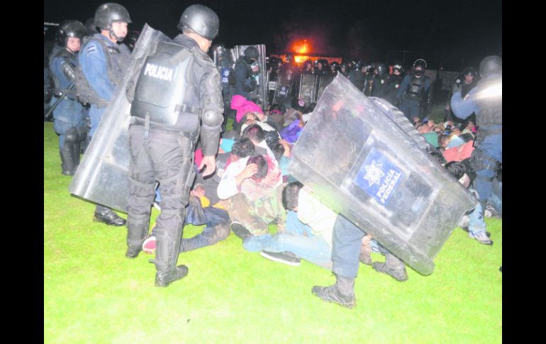 México | La CNDH indaga Policías federales detienen a 176 normalistas y recuperan vehículos Los agentes toman el control de las normales de Tiripetío, Arteaga y Cherán, en Michoacán Por: EL INFORMADOR 16 de octubre de 2012 - 03:03 hs Sorprenden. Policías federales someten a estudiantes de la normal de Tiripetío, también hubo operativos en Cherán y Arteaga. NTX / MORELIA, MICHOACÁN (16/OCT/2012).- Los policías federales sorprendieron a los normalistas michoacanos. Con trajes antimotines, entraron ayer por la madrugada a las escuelas de Tiripetío, Cherán y Arteaga, todas en Michoacán, para recuperar los vehículos que los estudiantes secuestraron el pasado 5 de octubre. En el operativo fueron recuperadas 82 de las unidades, hubo estudiantes y policías heridos. Otras 14 unidades fueron destruidas, 13 de ellas incendiadas. El vocero del Gobierno estatal, Julio César Hernández, dio a conocer que detuvieron a 176 normalistas y que ocho policías federales y un elemento del Grupo de Operaciones Especiales (Goe) resultaron lesionados. Por la tarde la Visitaduría Regional de la Comisión Estatal de Derechos Humanos informó que entre los detenidos había 39 mujeres, que fueron liberadas. El gobernador, Fausto Vallejo Figueroa, aclaró que en Tiripetío detuvieron a 168 jóvenes, en Cherán a seis y a dos en Arteaga. La Comisión Nacional de los Derechos Humanos dijo que ya investiga los hechos. La Coordinadora Nacional de Trabajadores de la Educación (CNTE) bloqueó varias arterias de Morelia, la carretera Capacuaro-Uruapan y tomaron la caseta de peaje cercana a Uruapan de la autopista Siglo 21 para exigir la liberación de los jóvenes y condenar el abuso de la fuerza física. En la Procuraduría estatal unos 200 normalistas se plantaron para hacer lo propio. También anunciaron un paro indefinido de labores e iniciaron una marcha vehicular de Morelia a Tiripetío. Los estudiantes se oponen a la reforma curricular, que ya se implementa en las otras normales que hay en el país y que incluye las materias de inglés y nuevas tecnologías. EL DATODetuvieron al líder de la CNTE El dirigente y ex dirigente de la CNTE , Juan Ortega y Jorge Cázares, fueron detenidos por equivocación y posteriormente quedaron en libertad. Con información de El Universal/NTX Temas CNDH Michoacán Estados Reforma Educativa CNTE Policía Federal Lee También Traslados escolares representan el 20% del tráfico en López Mateos Tractocamión derriba postes y provoca cierre vial en Periférico y Vallarta Inapam: Aguinaldo, fecha límite del pago con el programa de Vinculación Productiva ¿Recibiste correo de rechazo de FIFA? Aquí te decimos cuándo es la siguiente venta Recibe las últimas noticias en tu e-mail Todo lo que necesitas saber para comenzar tu día Registrarse implica aceptar los Términos y Condiciones