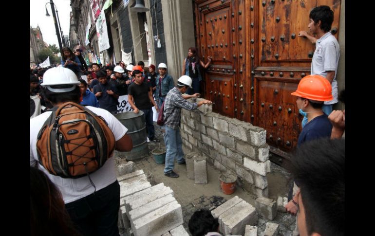 México | Alumnos del IPN hace una mezcla de cemento para colocar ladrillos en la sede Politécnicos construyen muro frente a la SEP Alumnos del IPN hace una mezcla de cemento para colocar ladrillos en el acceso principal Por: SUN 20 de noviembre de 2014 - 14:47 hs Los estudiantes repudian la designación de Enrique Fernández Fassnacht como director general del Instituto. SUN / A. Hernández CIUDAD DE MÉXICO (20/NOV/2014).- Estudiantes del Instituto Politécnico Nacional ( IPN) arribaron a las puertas de la Secretaría de Educación Pública (SEP) en donde construyen un muro de ladrillos con el cual demandan respuesta a su pliego petitorio. Alumnos de la Escuela Superior de Ingeniería y Arquitectura transportaron en una camioneta arena y cemento, y en este momento hacen la mezcla con la cual colocarán los ladrillos en el acceso principal de las instalaciones de la SEP. Entre gritos de "Fernández, el Poli no te quiere", los estudiantes repudiaron la designación de Enrique Fernández Fassnacht como director general del IPN. En las paredes de la dependencia, los jóvenes colocaron letreros en los que se lee: "Fernández, tú no eres digno de la ESIQIE” (Escuela Superior de Ingeniería Química e Industrias Extractivas). Un estudiante trepó por los balcones del inmueble para colocar una manta en contra de los nuevos planes de estudio. Al paso de la marcha, algunos comercios bajaron sus cortinas por miedo a ser víctimas de algún saqueo. Temas SEP Estados IPN Ciudad de México Manifestaciones en la Cd. de México Recibe las últimas noticias en tu e-mail Todo lo que necesitas saber para comenzar tu día Registrarse implica aceptar los Términos y Condiciones