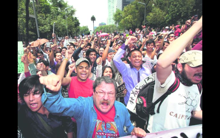México | Protestas en el Distrito Federal y Guadalajara Por tercera ocasión, #YoSoy132 manifiesta su rechazo a Peña Nieto Hubo quienes recordaron la presunta relación de ex gobernadores tricolores con el crimen organizado Por: EL INFORMADOR 25 de junio de 2012 - 02:22 hs CIUDAD DE MÉXICO. El escritor Paco Ignacio TaiboII (c) encabezó la multitudinaria protesta en la capital del país. NTX / CIUDAD DE MÉXICO (25/JUN/2012).- Mientras Enrique Peña Nieto encabezaba un mitin en el Estadio Azteca, en el Zócalo capitalino el movimiento #YoSoy132 celebró la tercer marcha en contra del aspirante priista a la Presidencia. El contingente de estudiantes de diversas universidades, electricistas que trabajaban en el Sindicato Mexicano de Electricistas (SME) y hasta miembros de la Coordinadora Nacional de Trabajadores de la Educación (CNTE), marcharon de la Plaza de la Constitución hacia el Ángel de la Independencia. En el estadio dos veces mundialista Peña Nieto pedía a los ciudadanos su voto de confianza, mientras que a varios kilómetros de ahí jóvenes gritaban consignas como “¡Peña, entiende, el pueblo no te quiere!” y “¡Ni un voto al PRI!” Tras la manifestación de #YoSoy132 los jóvenes instalaron un campamento en el Monumento a la Revolución, el cual fungirá como “centro operativo” para los próximos días. Eco en Guadalajara Los miembros de #YoSoy132 Guadalajara también manifestaron su rechazo a la candidatura de Peña Nieto. “Ni un voto al PRI”, gritaba al unísono un contingente de alrededor de 300 personas que se reunió en la Plaza de la Liberación, luego de marchar sobre la Avenida 16 de Septiembre, provenientes de la Glorieta de la Normal. Los miembros del movimiento, en su mayoría jóvenes, dieron lectura a una serie de inconformidades en contra del mexiquense. Aclararon que no representan a ningún candidato. A las 13:00 horas partieron hacia Plaza de la Liberación unas 130 personas y conforme avanzaban se sumaban más. “El pueblo consciente se une al contingente”, gritaban quienes se sumaban a los manifestantes. Cuando estuvieron frente a Palacio Federal se pararon un momento para demostrar su rechazo con consignas, lo mismo hicieron cuando estuvieron frente al Palacio del Ayuntamiento. Son un invento de los medios Pese a que nació en las redes sociales, el ex presidente de México, Vicente Fox, afirmó en una entrevista con el diario español El País que el movimiento estudiantil #Yosoy132 es una invención de los medios y de Andrés Manuel López Obrador. Al ser cuestionado sobre por qué pide votar por Enrique Peña Nieto, afirmó que sólo un milagro hará ganar a la panista Vázquez Mota. Temas Enrique Peña Nieto PRI Elecciones México 2012 #YoSoy132 Recibe las últimas noticias en tu e-mail Todo lo que necesitas saber para comenzar tu día Registrarse implica aceptar los Términos y Condiciones