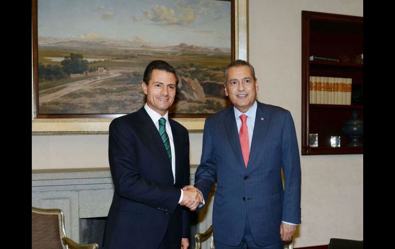 México | El mandatario se reúne con el nuevo dirigente nacional del PRI Presidente Peña Nieto dialoga con Beltrones en Los Pinos El mandatario se reúne con el nuevo dirigente nacional del PRI Por: NTX 25 de agosto de 2015 - 03:59 hs El presidente Enrique Peña Nieto durante la reunión con el dirigente nacional del PRI, Manlio Fabio Beltrones. ESPECIAL / CIUDAD DE MÉXICO (25/AGO/2015).- El presidente Enrique Peña Nieto se reunió este lunes con el dirigente nacional del Partido Revolucionario Institucional (PRI), Manlio Fabio Beltrones. Se trata de la primera reunión que el mandatario federal concreta con el dirigente del partido tricolor, en su calidad de presidente del Comité Ejecutivo Nacional (CEN) priista. Durante el encuentro, celebrado en la residencia oficial de Los Pinos, Peña Nieto y Beltrones Rivera abordaron distintos temas de la agenda nacional, dio a conocer la Presidencia de la República. En la reunión también estuvo presente la secretaria general del PRI, Carolina Monroy. Temas Gobierno de México Enrique Peña Nieto PRI Manlio Fabio Beltrones Lee También Fallece influencer Fede Dorcaz en presunto intento de robo en la CDMX Lista actualizada de selecciones que ya clasificaron al Mundial 2026 La edad de riesgo de padecer un trastorno mental, según expertos Esta es la ubicación de las presas que abastecen al Sistema Cutzamala Recibe las últimas noticias en tu e-mail Todo lo que necesitas saber para comenzar tu día Registrarse implica aceptar los Términos y Condiciones