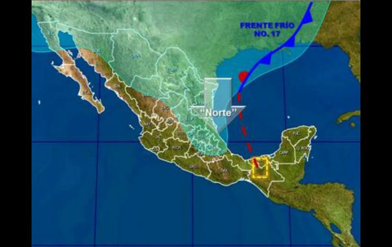 México | Se esperan heladas y que la temperatura descienda hasta los cinco grados Celcius Prevén lluvias en oriente y sureste del país Se esperan heladas y que la temperatura descienda hasta los cinco grados Celcius para algunos estados del país en las próximas horas Por: NTX 9 de diciembre de 2013 - 20:14 hs Este martes, el Frente Frío Número 17 se extenderá desde Florida hasta México. Tomada de @conagua_clima. ESPECIAL / CIUDAD DE MÉXICO (09/DIC/2013).- Este martes, el Frente Frío Número 17 se extenderá desde Florida en Estados Unidos pasando por el norte de Veracruz, hasta Chihuahua, y ocasionará precipitaciones de fuertes a muy fuertes en Chiapas, Hidalgo, Puebla, San Luis Potosí, Tabasco y Veracruz. En tanto, la masa de aire frío avanza rápidamente y provocará descenso de temperatura con valores mínimos promedio de cinco grados Celsius y heladas en zonas altas del Estado de México, Distrito Federal, Chihuahua, Coahuila, Durango, Hidalgo, Guanajuato, Puebla, Tlaxcala y Zacatecas, para las próximas 24 horas; así lo informó la Comisión Nacional del Agua ( Conagua). En un comunicado, la dependencia federal refirió que el evento de norte en el litoral de Tamaulipas y Veracruz, con rachas de hasta 60 km/hr y un canal de baja presión, ubicado en el occidente de la Península de Yucatán, favorecerá nublados con lluvias de ligeras a moderadas dispersas, en Yucatán. Asimismo, se registrará lluvia ligera y aislada en el estado de México, Guerrero y Michoacán, debido al ingreso de aire cálido y húmedo a la costa del Pacífico central y sur. Temas Estados Frío Clima Lluvias en el país Recibe las últimas noticias en tu e-mail Todo lo que necesitas saber para comenzar tu día Registrarse implica aceptar los Términos y Condiciones