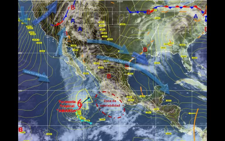 México | Continuarán lluvias muy fuertes en Jalisco, Michoacán y Colima Prevén que 'Amanda' se debilite a depresión tropical el viernes Continuarán lluvias muy fuertes en Jalisco, Michoacán y Colima Por: NTX 28 de mayo de 2014 - 18:22 hs 'Amanda' se desplaza hacia el noreste con vientos sostenidos de 95 kilómetros por hora y rachas de 110. TOMADA DE @conagua_clima / CIUDAD DE MÉXICO (28/MAY/2014).- La tormenta tropical “Amanda”, ubicada a 810 kilómetros al sur-suroeste de Cabo San Lucas, Baja California Sur, se debilitaría a depresión tropical el próximo viernes, previó el Sistema Nacional de Protección Civil (Sinaproc). No obstante mantiene en fase de acercamiento, la alerta naranja en las islas Socorro y San Benedicto; la verde en el occidente y sur de Jalisco así como en la zona sur de Baja California Sur; y la azul en el resto de Baja California Sur, Jalisco, Colima y Nayarit. Mediante su Sistema de Alerta Temprana (Siat), el organismo de la Secretaría de Gobernación detalló que “Amanda” se desplaza hacia el noreste, a una velocidad de 13 kilómetros por hora con vientos sostenidos de 95 kilómetros por hora y rachas de 110. En su alerta por ciclón tropical, indicó que la amplia circulación del fenómeno climático interacciona con aire tropical húmedo procedente del Océano Pacífico, lo que ocasiona lluvias muy fuertes en Jalisco y Michoacán y fuertes en Colima, así como vientos y oleaje elevado en sus inmediaciones. De acuerdo con el pronóstico, se prevé que durante lo que resta de este miércoles, “Amanda” mantenga su desplazamiento al noreste y siga debilitándose gradualmente dentro de su categoría de tormenta tropical. En tanto que, el próximo viernes se ubicaría a 600 kilómetros al sur-sureste de Cabo San Lucas, Baja California Sur, y a 395 kilómetros al suroeste de La Fortuna, Jalisco, como depresión tropical. A su vez, la Comisión Nacional del Agua (Conagua) advirtió que para las próximas horas también se prevén lluvias intensas acompañadas de tormentas eléctricas y granizadas en regiones de Puebla, Guerrero, Veracruz, Oaxaca y Chiapas. Además se esperan lluvias muy fuertes en puntos del Estado de México, Tamaulipas y Tlaxcala; fuertes en localidades de Hidalgo, Distrito Federal y Morelos, originadas por una zona de bajas presiones en el Océano Pacífico y que seguirá provocando fuerte arrastre de humedad. En un comunicado alertó a la población de los lugares donde las precipitaciones han sido continuas, ya que podrían ocurrir deslaves, deslizamiento de laderas, desbordamientos de ríos y arroyos, afectaciones en caminos y tramos carreteros, así como inundaciones en zonas bajas y saturación de drenajes. La Conagua, el Servicio Meteorológico Nacional y el Sinaproc exhortaron a la población a mantenerse informada sobre las condiciones meteorológicas en la cuenta de Twitter @conagua_clima, en la página smn.conagua.gob.mx o www.conagua.gob.mx y seguir las indicaciones del personal de protección civil. Temas Conagua Estados Huracanes Clima Tormenta tropical Lee También "Raymond", "Priscilla" y otros fenómenos dejarán lluvias en estos estados Pronóstico de lluvia hoy, 10 de octubre, a esta HORA en CDMX Continúa bandera roja en todas las playas de Puerto Vallarta Con "Raymond" cerca, Guadalajara espera lluvias a esta hora del viernes Recibe las últimas noticias en tu e-mail Todo lo que necesitas saber para comenzar tu día Registrarse implica aceptar los Términos y Condiciones