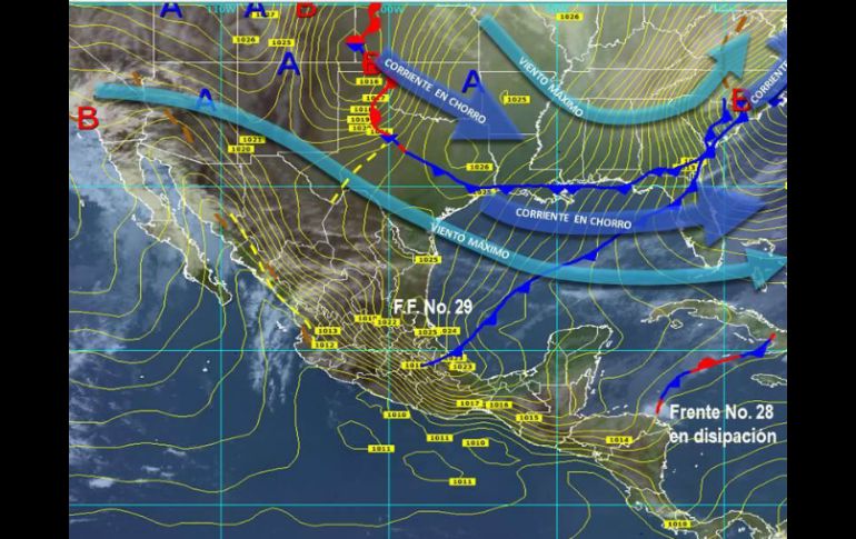 México | Prevén temperaturas de entre cero y cinco grados en Jalisco, Sinaloa y el DF Pronostican temperaturas muy bajas en gran parte del país Prevén temperaturas de entre cero y cinco grados en Jalisco, Baja California, Sinaloa, Michoacán, Aguascalientes, Guanajuato y el DF Por: NTX 21 de enero de 2014 - 18:59 hs CIUDAD DE MÉXICO (21/ENE/2014).- La masa de aire polar que impulsa al frente frío 29 mantendrá temperaturas muy bajas durante la mañana y la noche del miércoles en gran parte de la República Mexicana y se prevén temperaturas mínimas inferiores a cero grados con heladas, en zonas altas de 10 estados del país. La Comisión Nacional del Agua ( Conagua) especificó que los entidades son Sonora, Chihuahua, Coahuila, Nuevo León, Durango, Zacatecas, Puebla, Hidalgo, Tlaxcala y el Estado de México. En tanto, las temperaturas se ubicarían entre cero y cinco grados en Baja California, Sinaloa, San Luis Potosí, Tamaulipas, Jalisco, Michoacán, Aguascalientes, Guanajuato, Querétaro, Veracruz, Oaxaca y el Distrito Federal. Detalló que durante la mañana ese sistema frontal se prolongará de la Península de Yucatán al Mar Caribe, con tendencia a disiparse; al combinarse con el ingreso de humedad de ambos océanos propiciaría lluvias moderadas en Guerrero, Chiapas, Tabasco y Veracruz, así como ligeras en Oaxaca, Campeche, Quintana Roo y Jalisco. En un comunicado, el organismo indicó que los vientos del norte podrían alcanzar velocidades de 30 a 45 kilómetros por hora en el Golfo de México y el litoral de la Península de Yucatán, así como rachas de hasta 80 en el Istmo y Golfo de Tehuantepec. Por otra parte, el frente frío 30 avanzará rápidamente hacia el norte del Golfo de México, por donde ingresará las primeras horas del jueves. En su recorrido hacia el sureste, el sistema frontal generará potencial de lluvias de moderadas a fuertes en la Península de Yucatán, el norte, noreste, oriente y sureste de la República. De acuerdo con la Conagua, la amplia e intensa masa de aire polar que le impulsará provocará marcado descenso de las temperaturas en gran parte del territorio nacional, con potencial de nevadas en el norte de Chihuahua, Coahuila, Nuevo León y Tamaulipas, durante jueves y viernes. Por ello, la Conagua instó a la población para que extreme precauciones y se abrigue, para reducir los riesgos de enfermedades respiratorias, principalmente en adultos mayores y niños. También debe mantenerse atenta a los avisos de las autoridades locales, estatales y de Protección Civil. Temas Conagua Estados Frío Clima Lee También ¿LLUVIA en GDL por la noche?, pronóstico del clima para hoy, 13 de octubre Suben termómetros en Guadalajara y se espanta la lluvia este martes SMN: Estados que serán más afectados por Raymond y frente frío 6 esta semana Así se prevé que avance el desarrollo de "Sonia" en México Recibe las últimas noticias en tu e-mail Todo lo que necesitas saber para comenzar tu día Registrarse implica aceptar los Términos y Condiciones