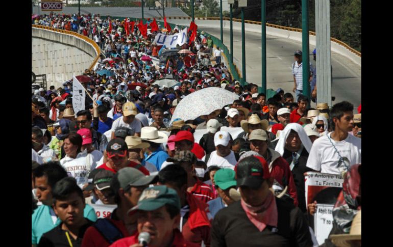 México | El vocero de los padres de normalistas responsabiliza al Ejército de su desaparición Prosiguen marcha tras bloqueo en Autopista del Sol Durante la manifestación, el vocero de los padres de normalistas responsabiliza al Ejército Por: SUN 5 de febrero de 2015 - 17:51 hs En la protesta se exigió el regreso con vida de los normalistas, así como el pago de salarios al magisterio. SUN / J. Ríos CHILPANCINGO, GUERRERO (05/FEB/2015).- Luego de una hora y media de permanecer en el punto conocido como Parador del Marqués, sobre la Autopista del Sol, un grupo de manifestantes encabezado por los familiares de los 43 normalistas de Ayotzinapa avanzó rumbo al centro de Chilpancingo. En tanto, los vehículos avanzaron en el carril con dirección hacia Acapulco. En el Parador del Marqués, los manifestantes se pronunciaron por la aparición con vida de los estudiantes de la Normal Rural "Raúl Isidro Burgos". Durante el bloqueo se observaron alrededor de ocho patrullas de la Policía Federal, mientras que el grupo de inconformes se compone por unas ocho mil personas. En el transcurso de la marcha, Felipe de la Cruz, vocero de los padres de los 43 normalistas, responsabilizó al Ejército de los hechos ocurridos el pasado 26 de septiembre en Iguala. Asimismo, al hacer una pausa frente a instalaciones militares, De la Cruz hizo un llamado a los guerrerenses a no permitir las elecciones en la entidad. En la protesta se exigió el regreso con vida de los normalistas, así como el pago de salarios al magisterio. También representantes de la Policía Comunitaria de Petaquillas se sumaron al contingente. Temas Estados Guerrero Manifestaciones en México Caso Ayotzinapa Lee También Clima en Ciudad de México hoy: el pronóstico para el domingo 12 de octubre de 2025 Reformas a Ley de Amparo no limita derechos ciudadanos Festival del Pan de Muerto en CDMX: Fechas, horarios y actividades "Raymond" baja su potencia, pero tocará tierra en horas Recibe las últimas noticias en tu e-mail Todo lo que necesitas saber para comenzar tu día Registrarse implica aceptar los Términos y Condiciones