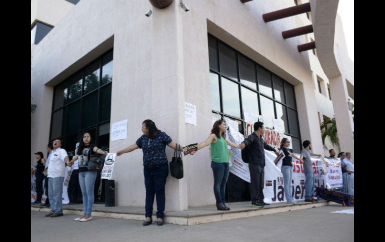 CULIACÁN, SINALOA (15/JUL/2017).- En la puerta de la Fiscalía General de Sinaloa fue colocado un pequeño féretro y mantas, en fondo blanco con letras rojas con los mensajes "Justicia para Javier Valdez" y "No al silencio".Activistas sociales, de derechos humanos y periodistas en forma simbólica clausuraron el edificio oficial, ubicado en el desarrollo urbano de Tres Ríos en reclamo por el esclarecimiento del asesinato del cofundador del Semanario RioDoce, Javier Valdez Cárdenas.Con gritos de "Justicia para Javier Valdez", los manifestantes colocaron en pilares de acceso a la Fiscalía General del Estado cartulinas con los mensajes: "Clausurado por la inutilidad del fiscal"; "Sinaloa, estado ensangrentado por el des-gobierno".Alejandro Sicarios Rivas, confundador del Semanario RioDoce, externó que a dos meses del asesinato del periodista no se conoce ningún avance de las investigaciones.La tarde del pasado 15 de mayo, el periodista y escritor fue interceptado por dos hombres armados cuando conducía su vehículo, fue obligado a descender y le dispararon en doce ocasiones.Sicairos Rivas externó que pese a los compromisos de las autoridades federales y estatales por esclarecer el crimen, no se observa voluntad para cumplirlo.