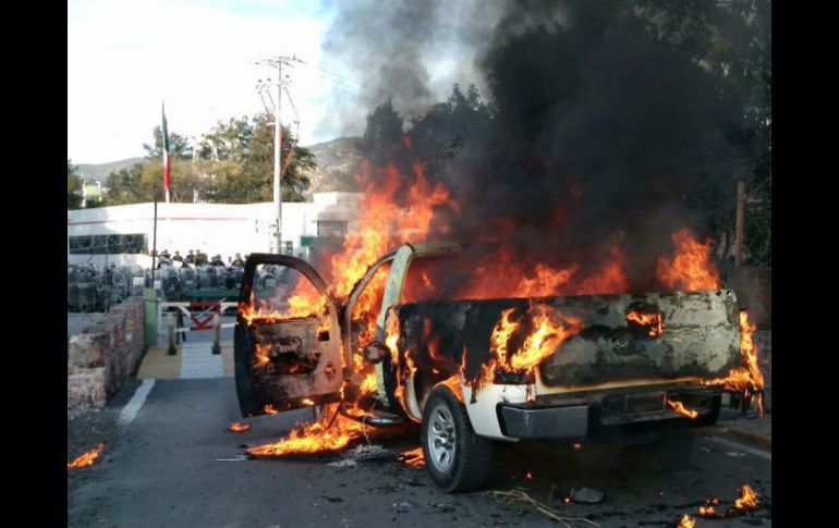México | Estudiantes e integrantes de la CNTE se manifestaron en Oaxaca, Veracruz y Chiapas Protestan en diferentes estados frente a cuarteles por Ayotzinapa Estudiantes e integrantes de la CNTE se manifestaron en Oaxaca, Veracruz y Chiapas Por: SUN 12 de enero de 2015 - 19:48 hs En la zona militar 27 en Ayotzinapa, manifestantes quemaron una camioneta. SUN / J. Ríos CIUDAD DE MÉXICO (12/ENE/2015).- Estudiantes, trabajadores e integrantes de la Coordinadora Nacional de Trabajadores de la Educación (CNTE) se manifestaron en Oaxaca, Veracruz y Chiapas frente a instalaciones del Ejército mexicano para exigir la presentación con vida de 42 normalistas de Ayotzinapa desaparecidos en Iguala el pasado 26 de septiembre de 2014. A pesar de que en algunos sitios hicieron pintas, las manifestaciones transcurrieron en calma, a diferencia de las movilizaciones reportadas en Guerrero, donde cuatro personas resultaron heridas en Iguala durante un enfrentamiento con militares del 27 Batallón de Infantería. En Oaxaca, integrantes de la Sección 22 de la CNTE protestaron la tarde de este lunes en la 28 Zona Militar, ubicada en Santa María Ixcotel, para exigir la presentación con vida de los 42 normalistas desaparecidos de Ayotzinapa, Guerrero. En Chiapas, medio millar de maestros se manifestaron afuera de la Guarnición Militar de San Cristóbal de las Casas para pedir la presentación con vida de los 43 estudiantes de Ayotzinapa. Los maestros iniciaron la protesta en la unidad administrativa, conjunto de oficinas gubernamentales, para luego dirigirse hacia la Guarnición de la 31 Zona Militar. Durante la protesta en la zona castrense no hubo incidentes, sólo algunos militares tomaban fotografías a los maestros. Antes de las 18:00 horas, los docentes hicieron pintas en las instalaciones militares se retiraron del lugar En Veracruz, un reducido contingente de integrantes de la CNTE se manifestó frente a las instalaciones del 63 Batallón de Infantería del Ejército mexicano con sede en el municipio veracruzano de Emiliano Zapata. El grupo de inconformes se apostó en la entrada principal de las instalaciones militares ubicadas en la zona conocida como El Lencero, a 5 kilómetros de Xalapa. En el lugar desplegaron mantas en las que tenían mensajes que exigían justicia por el caso Ayotzinapa, la no criminalización de las protestas y la defensa de las escuelas normales rurales. "En defensa del normalismo rural, exigimos al Estado presentación con vida de los 43 estudiantes Justicia" y "CNTE Veracruz. NO a la criminalización de la protesta social y estudiantil en Veracruz", se leía en algunos de los mensajes. Aunque los manifestantes bloquearon por algunos momentos el ingreso del personal militar, tras ser escuchados abandonaron el lugar. Temas Ejército Estados Guerrero Manifestaciones en México Desapariciones y denuncias Caso Ayotzinapa Lee También Revelan llamada al 911 con que se reportó la muerte de Diane Keaton Clara Brugada rinde su Primer Informe de Gobierno SMN advierte lluvias y bajas temperaturas en México esta semana Morelos reporta siete muertos tras lluvias de las últimas horas Recibe las últimas noticias en tu e-mail Todo lo que necesitas saber para comenzar tu día Registrarse implica aceptar los Términos y Condiciones