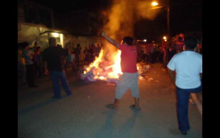 México | Los hechos ocurren en el municipio de Mazatán, a unos 20 kilómetros de Tapachula Queman dos urnas electorales en Chiapas La prensa se traslada al lugar, pero los inconformes impiden que tomen fotografías, incluso son advertido que de no retirarse serían retenidos Por: NTX 2 de julio de 2012 - 21:33 hs Unos 300 simpatizantes del PVEM y PRD en Mazatán, Chiapas, queman boletas y dañan el instituto electoral del municipio. EL UNIVERSAL / TAPACHULA, CHIAPAS (02/JUL/2012).- Grupos inconformes quemaron las recientes horas por los menos dos urnas electorales del proceso que se vivió ayer en la entidad. Los hechos, de acuerdo con testigos, ocurrieron en la cabecera del municipio de Mazatán, a unos 20 kilómetros de Tapachula. Representantes de la prensa se trasladaron al lugar, pero los inconformes impidieron que tomaran fotografías y cumplieran con su trabajo, incluso les advirtieron que de no retirarse de la ciudad serían retenidos en la plaza central. Jorge Luis Villarreal Zunún, quien dijo ser militante del PRD, dijo que desconocía quiénes habían quemado las urnas, pero que la población estaba tan inconforme con los resultados de la votación, ''y que hay la posibilidad de que quemen más''. Todo se deriva, añadió, de que ''la población considera que las autoridades locales intervinieron de manera ilegal para favorecer a los candidatos del PRI''. Afirmó que grupos de simpatizantes del resto de los partidos políticos que intervinieron en el proceso se mantienen concentrados en los comités de ese municipio, pero también en las calles. Recordó que entre las propuestas que hicieron este lunes los inconformes está que tomarán edificios públicos, entre ellos la alcaldía, para exigir la cancelación de los comicios. La víspera, el Instituto Federal Electoral (IFE) reportó tres urnas más sustraídas y quemadas en el municipio de San Andrés Duraznal, correspondientes a las elecciones de Presidente, senadores y diputados federales. Temas Chiapas Elecciones México 2012 Recibe las últimas noticias en tu e-mail Todo lo que necesitas saber para comenzar tu día Registrarse implica aceptar los Términos y Condiciones