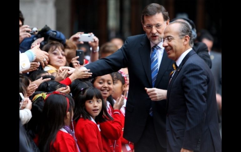 México | El mandatario español reiteró su apoyo a México Rajoy destaca la lucha de Calderón contra la violencia El jefe del Ejecutivo español también ha expresado al Mandatario mexicano ''la solidaridad de España con las víctimas del terrorismo y de la violencia'' Por: EFE 18 de abril de 2012 - 10:00 hs CIUDAD DE MÉXICO (18/ABR/2012).- El jefe del Ejecutivo español, Mariano Rajoy, ha destacado hoy en México la "meritoria lucha" emprendida por el Gobierno del Presidente Felipe Calderón contra el crimen organizado, una de las prioridades políticas del mandatario. En su nombre, en el del Gobierno y el pueblo de España, Rajoy transmitió su "reconocimiento (...) por la meritoria lucha que ha emprendido el presidente para lograr que México sea un país libre y en paz". "Siempre nos tendrá en esta batalla a su lado", agregó Rajoy en el primer acto de la visita oficial que realiza a México, celebrado en el Palacio Nacional de la capital. El jefe del Ejecutivo español también ha expresado al mandatario mexicano "la solidaridad de España con las víctimas del terrorismo y de la violencia". Temas Narcotráfico Crimen Organizado Mariano Rajoy Recibe las últimas noticias en tu e-mail Todo lo que necesitas saber para comenzar tu día Registrarse implica aceptar los Términos y Condiciones